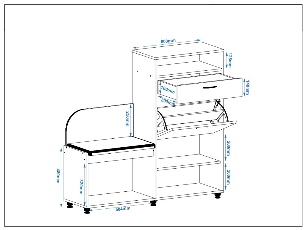 - Prostor pro vysoké boty: Otevřený prostor pod sedákem je dostatečně prostorný pro větší obuv, jako jsou kozačky, takže vaše boty budou vždy po ruce a uspořádané.