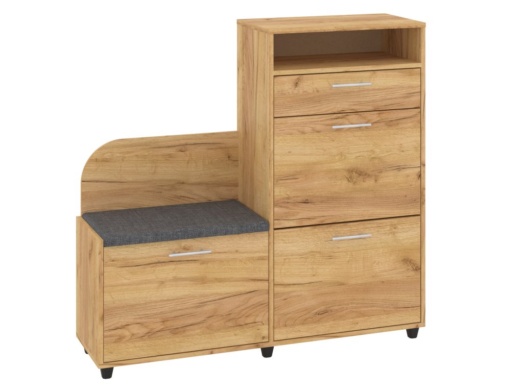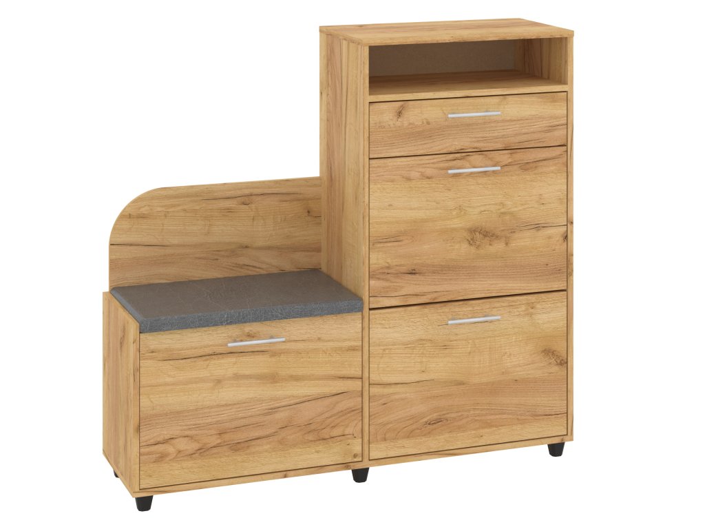 - Praktický úložný prostor: Za výklopnými dvířky se skrývají dvě police s hloubkou 35 cm, ideální pro uspořádání menších bot nebo jiných doplňků.