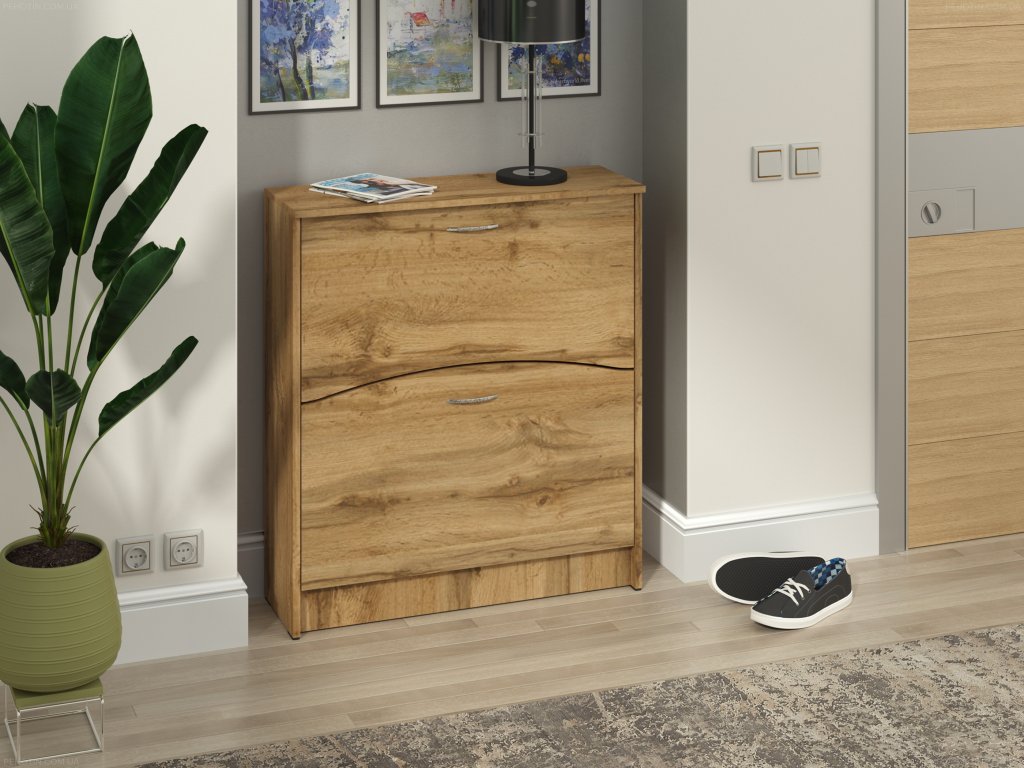 Dvouřadý výklopný botník T-02 je ideálním řešením pro každou domácnost, která hledá stylové a funkční místo pro uskladnění obuvi. S výškou 91 cm, šířkou 80 cm a hloubkou 27 cm nabízí dostatek prostoru pro uspořádání vašich bot, ať už jde o tenisky, boty na podpatku nebo zimní obuv. Výklopná konstrukce zaručuje snadný přístup k vašim botám a šetří místo, což je ideální pro menší prostory, předsíně nebo chodby.