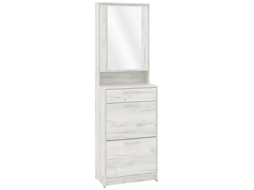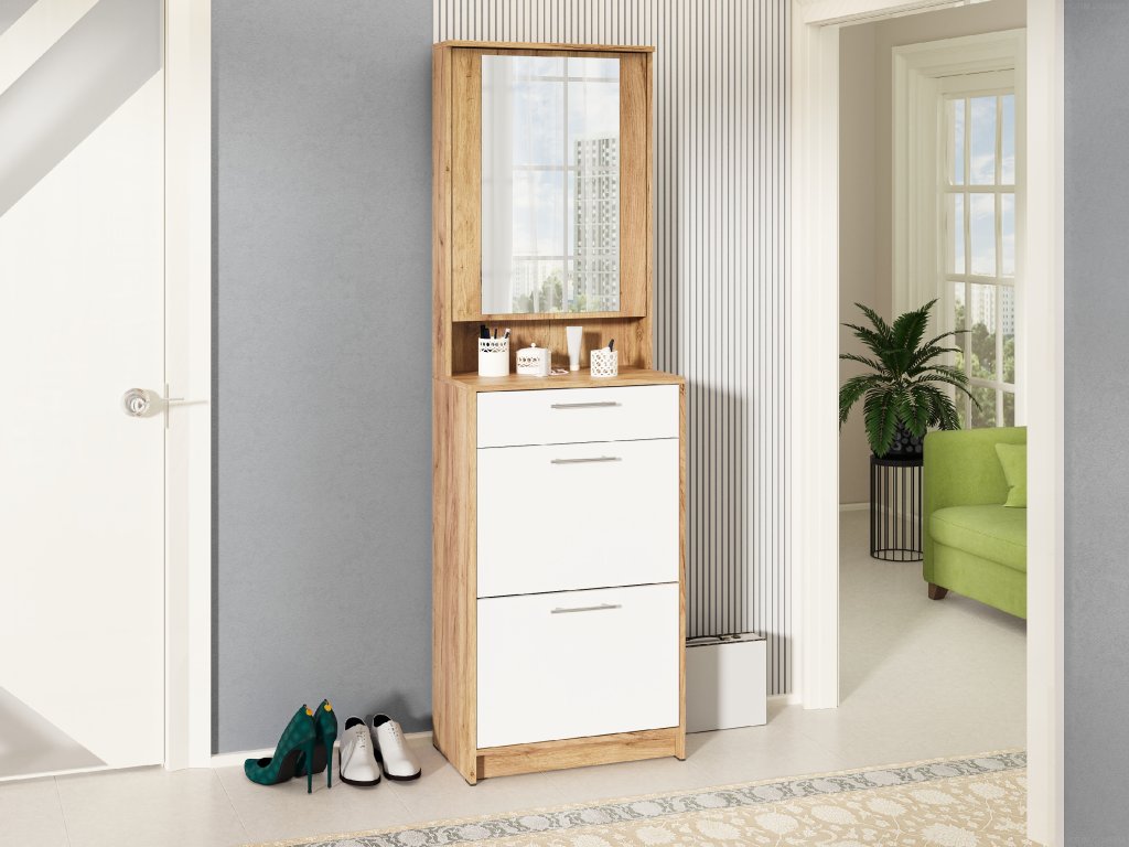 Výklopná konstrukce nabízí snadný přístup k vašim oblíbeným botám, zatímco zásuvka a skříňka s praktickým zrcadlem poskytují dostatek místa pro uložení dalších věcí, jako jsou klíče, čepice nebo rukavice. Skříňka se zrcadlem je navíc skvělým pomocníkem při poslední kontrole před odchodem z domu. Tato kombinace moderního designu a praktických funkcí dělá z tohoto botníku skvělou volbu pro každého, kdo hledá stylový a funkční nábytek do své předsíně.