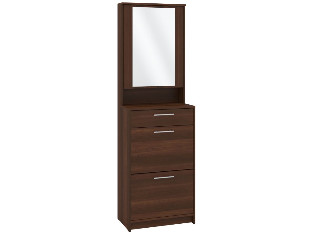 Vytvořte si v předsíni přehledný a stylový prostor s naším výklopným botníkem T-03. Tento moderní botník se dvěma řadami pro boty, praktickou zásuvkou a skříňkou se zrcadlem přináší dokonalou kombinaci funkcionality a designu. Díky elegantnímu provedení se hodí do každého interiéru, ať už jde o malý byt nebo prostorný dům. Jeho rozměry (výška 192,5 cm, šířka 60 cm, hloubka 36 cm) jsou ideální pro optimální využití prostoru, a to i v menších předsíních.