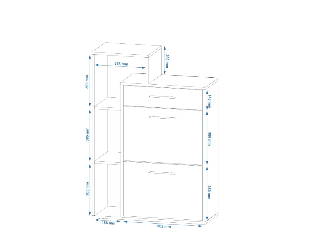 - Kompaktní rozměry: S výškou 117 cm, šířkou 80 cm a hloubkou 25 cm je tento botník ideální do předsíní, chodeb nebo menších bytů.