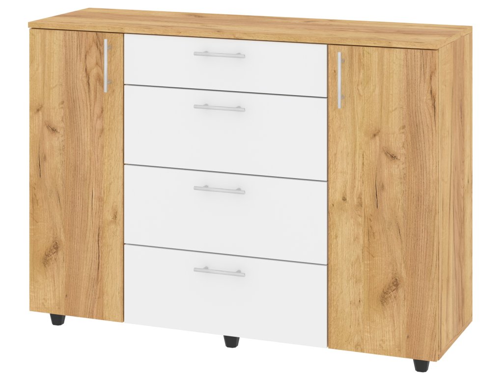 - Kombinace úložného prostoru – Zásuvky i dvířka umožňují snadné uspořádání a přehledné uskladnění věcí.
