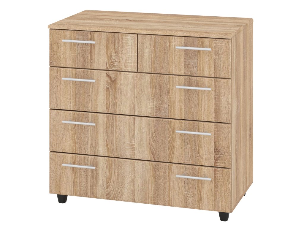 Komoda K-3+2 MDF je elegantní a praktický kus nábytku, který se hodí do každého interiéru. Vyrobena je z kvalitního lamina o tloušťce 16 mm, což zajišťuje její odolnost a dlouhou životnost. Celkové rozměry komody jsou: