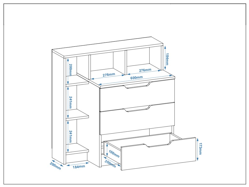 Všestranný úložný prostor: Díky prostorným zásuvkám a policím poskytuje dostatek místa pro různé věci, od oblečení až po dokumenty, což vám pomůže udržet pořádek.