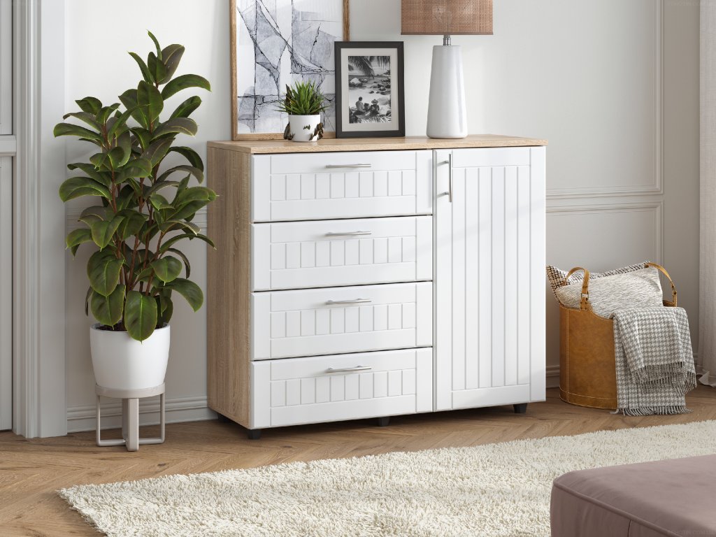 Komoda K-4+1 MDF je perfektní volbou pro ty, kteří hledají stylové a funkční řešení pro svůj domov.