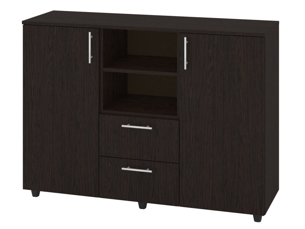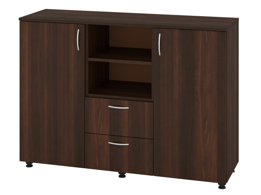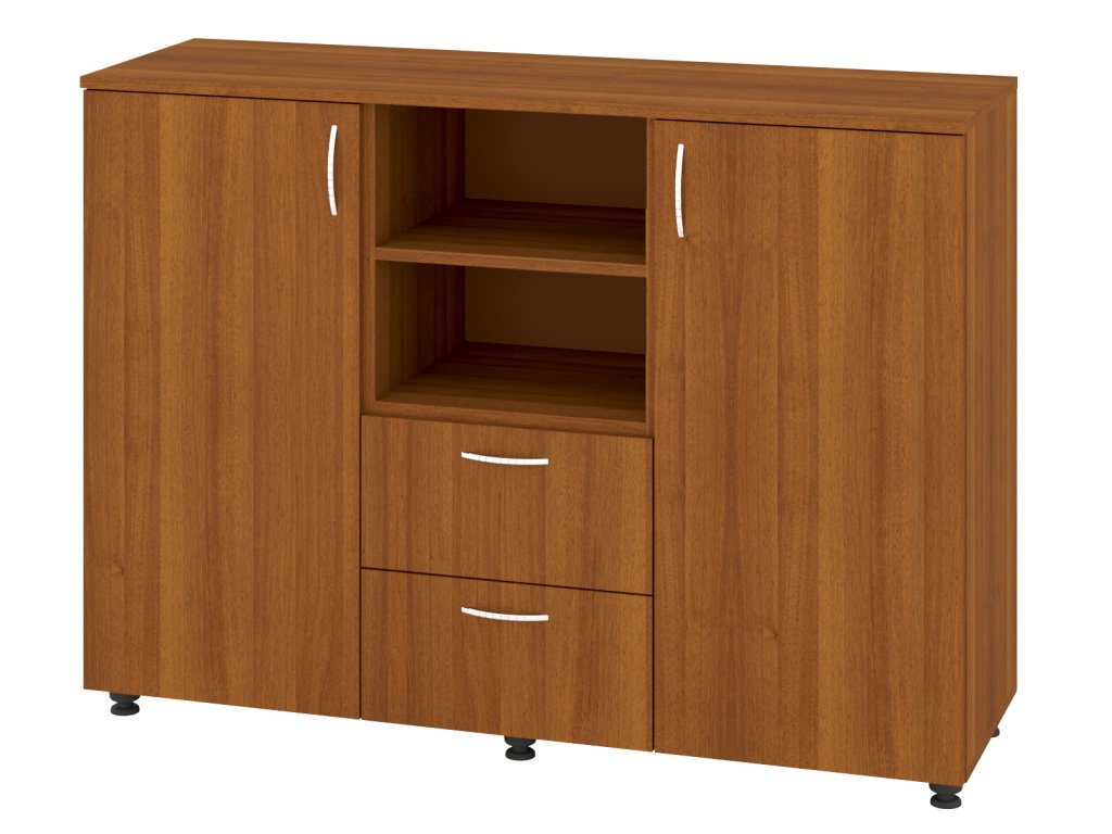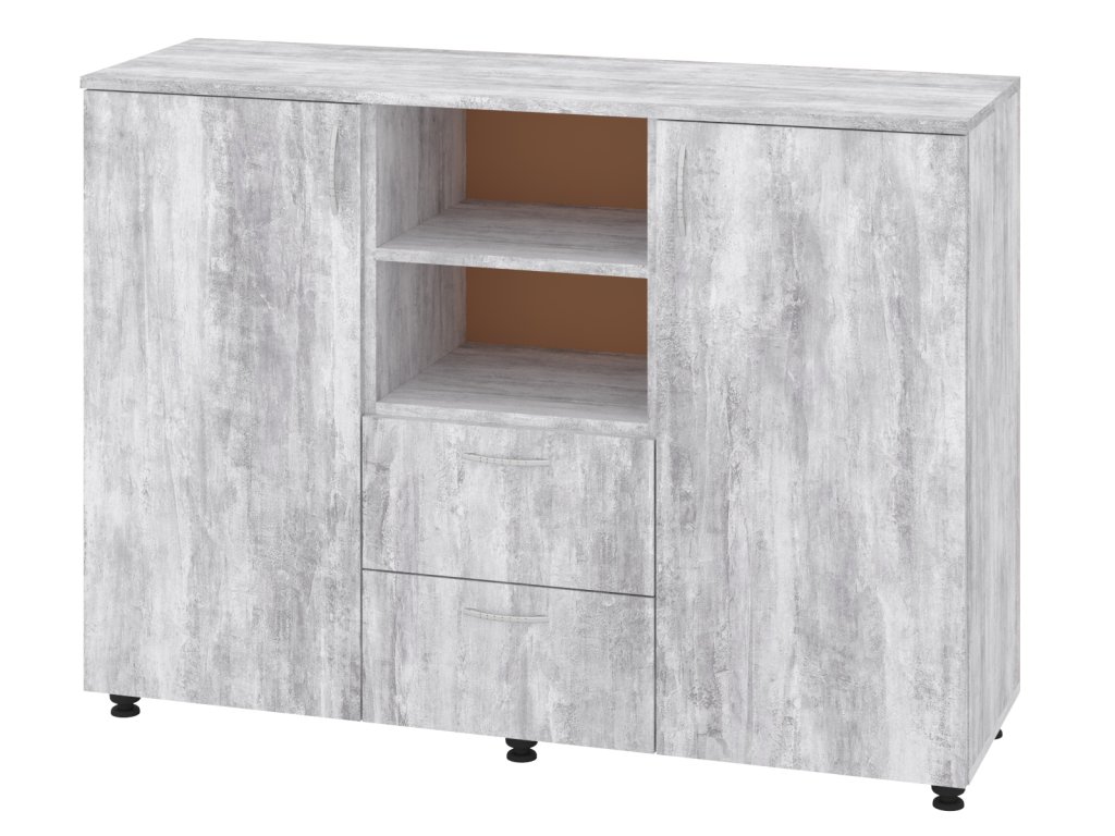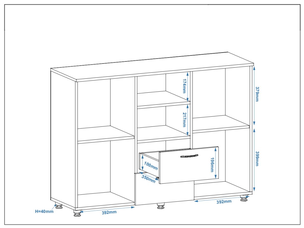 - Praktický design: Komoda je vybavena dvěma zásuvkami, dvěma dvířky a otevřenou policí, což umožňuje efektivní využití prostoru a snadné uspořádání věcí.