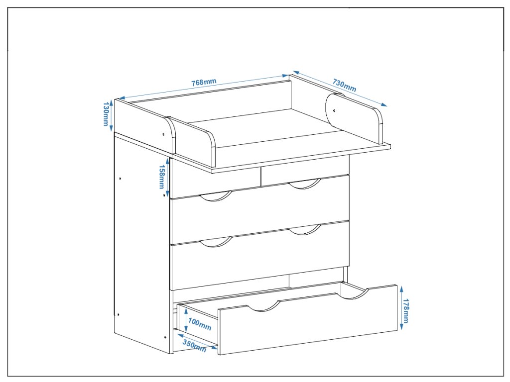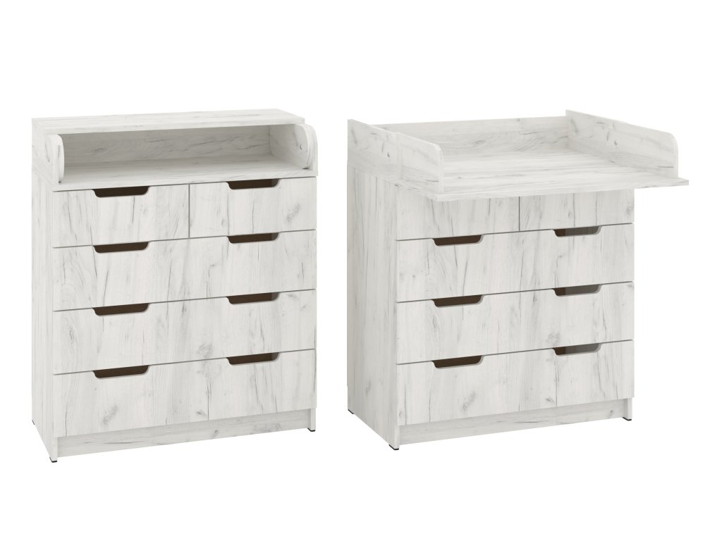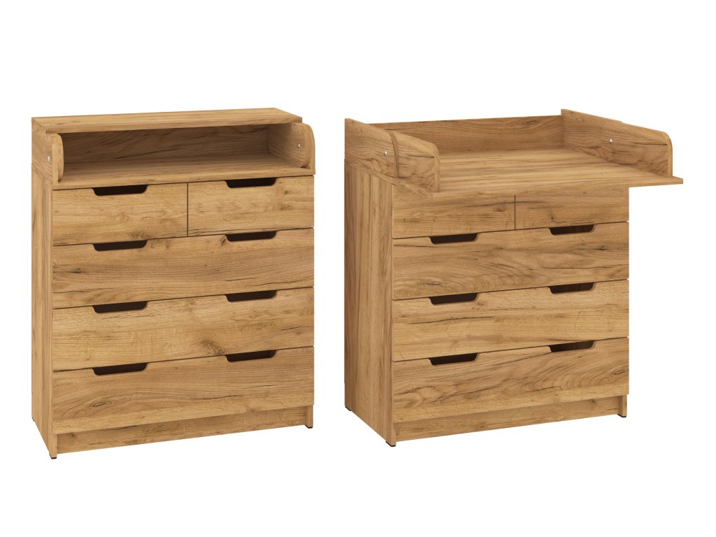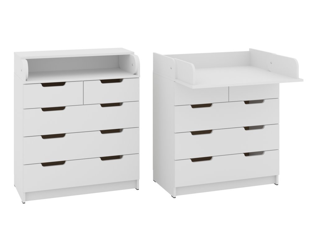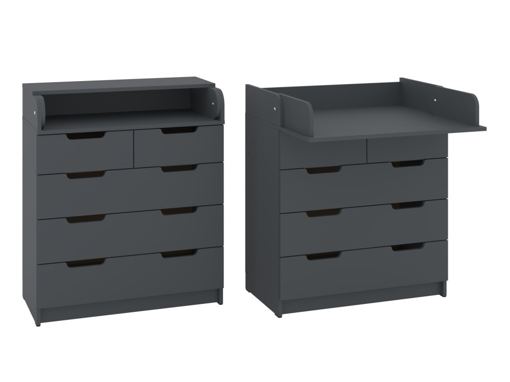 - 2v1 Design – Tato komoda slouží jako přebalovací pult a po složení desky se snadno přemění na prostornou zásuvkovou komodu s nikou, čímž ušetří místo a přizpůsobí se vašim potřebám i po přebalovacím období.