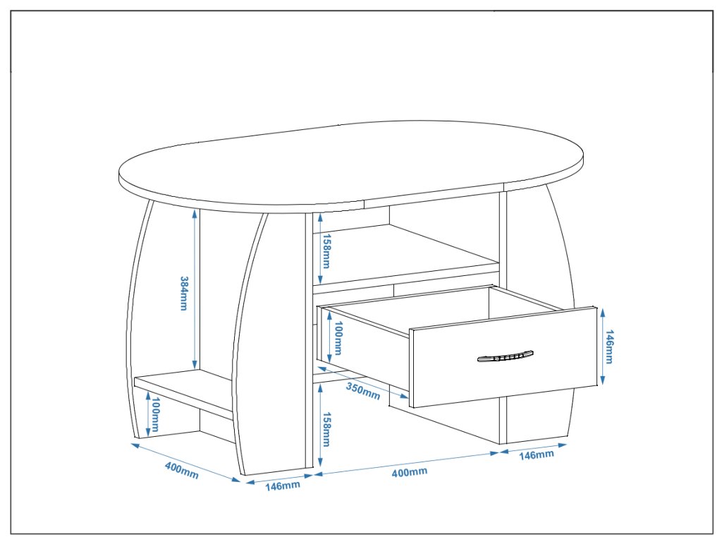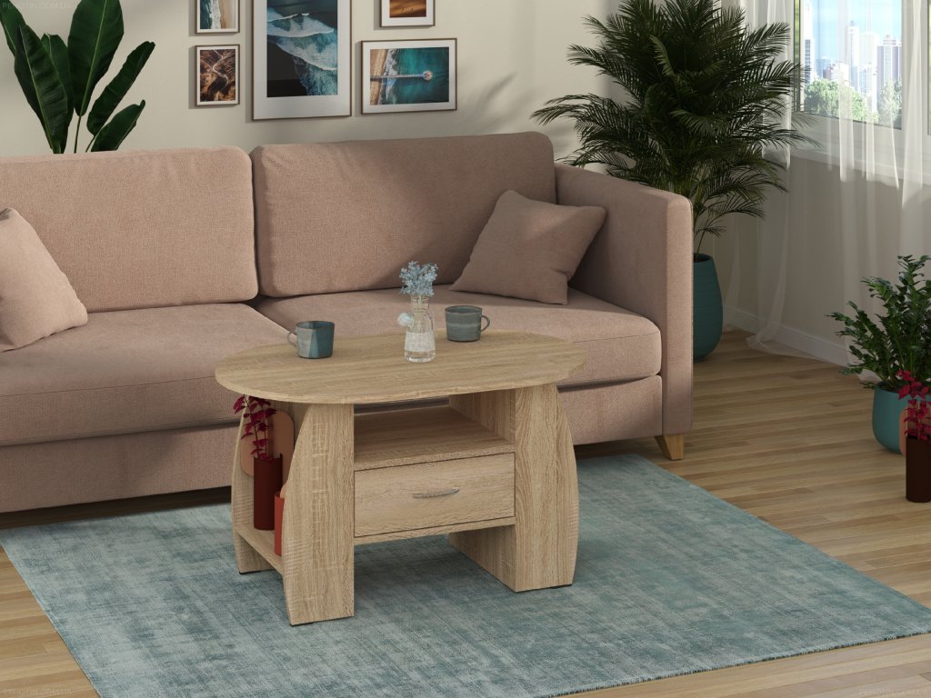 Konferenční stolek NARCIS je ideálním spojením elegance a funkčnosti. Jeho oválný tvar a moderní design perfektně zapadnou do každého obývacího pokoje, ložnice nebo pracovny. Vyroben z kvalitních materiálů, stolek nabízí dostatek úložného prostoru díky praktické polici a zásuvce, která pomůže udržet váš prostor čistý a uspořádaný.