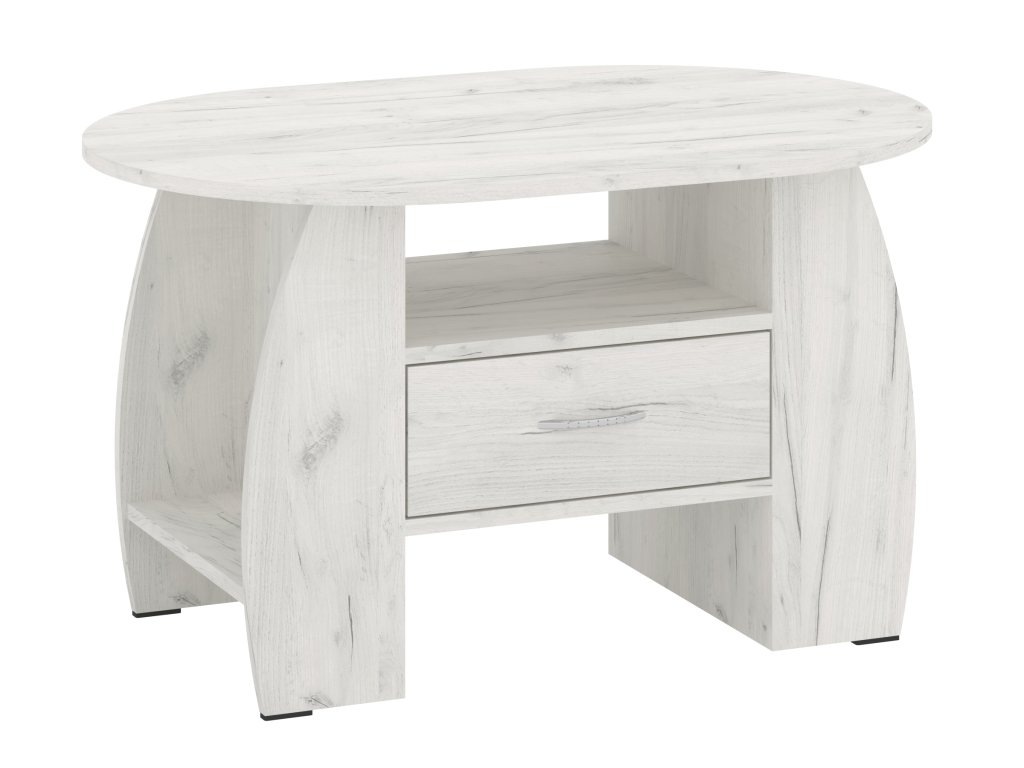 Stylový oválný konferenční stolek NARCIS s policí a zásuvkou – moderní a praktický doplněk pro váš interiér