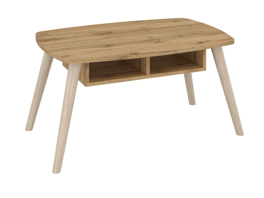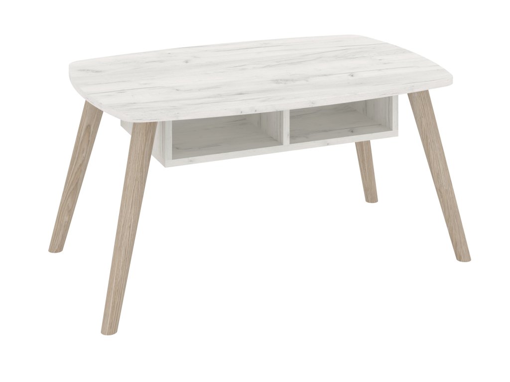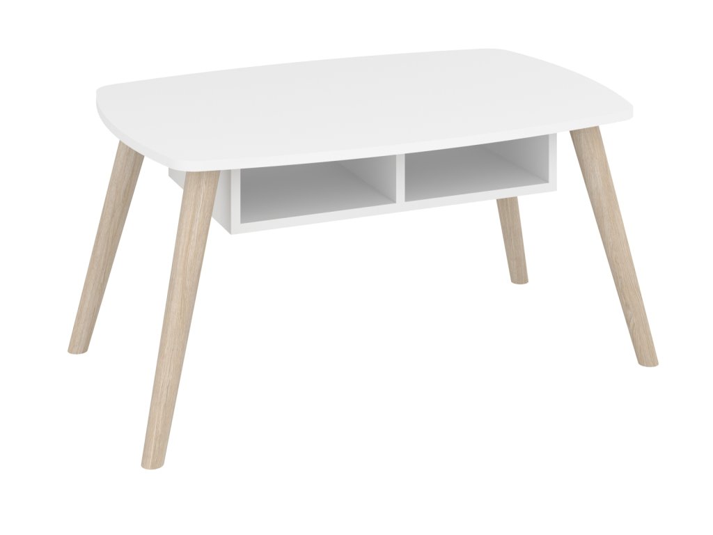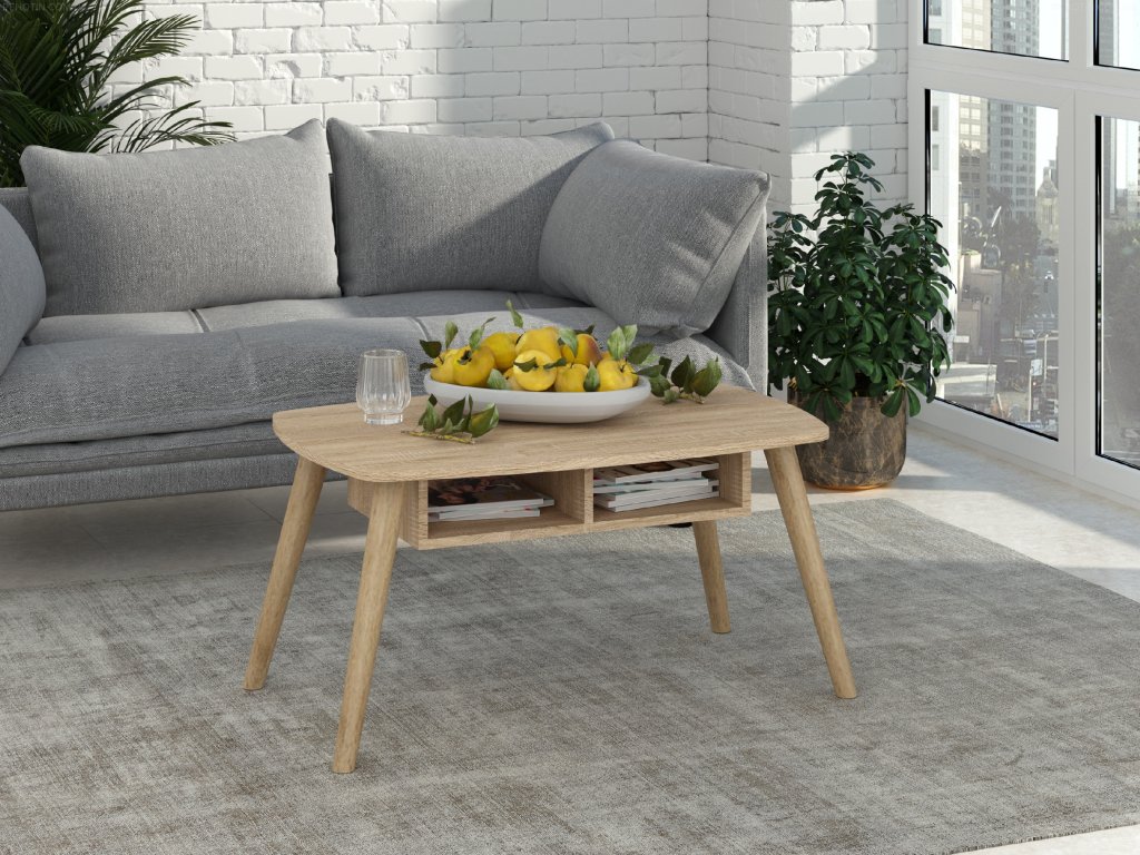 Vytvořte si útulný a stylový interiér s konferenčním stolkem PETRO, který spojuje skandinávský design s praktickým uspořádáním. Tento oválný stolek s dřevěnými nohami se stane elegantním doplňkem vašeho obývacího pokoje. Díky děleným policím nabízí dostatek úložného prostoru pro knihy, časopisy či jiné drobnosti, které chcete mít po ruce. Moderní skandinávský styl stolu v minimalistickém provedení vám umožní snadno kombinovat s dalšími prvky ve vašem interiéru.