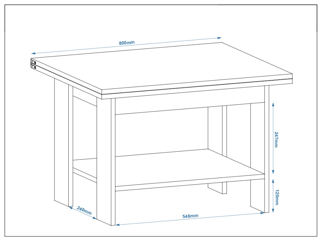 - Rozkládací design: Umožňuje zvětšení plochy stolu na 120 cm, což vám poskytne více prostoru při potřebě.
