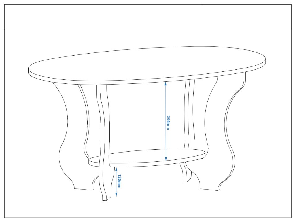 Rozměry stolu jsou hloubka 60 cm, délka 100 cm a výška 52 cm, což jej činí vhodným pro různé typy místností. Je ideální pro umístění na něj knihy, dekorace, nebo dálkový ovladač. Tvar oválné desky nejenže vypadá stylově, ale také je bezpečný pro rodiny s dětmi, jelikož nemá ostré hrany.