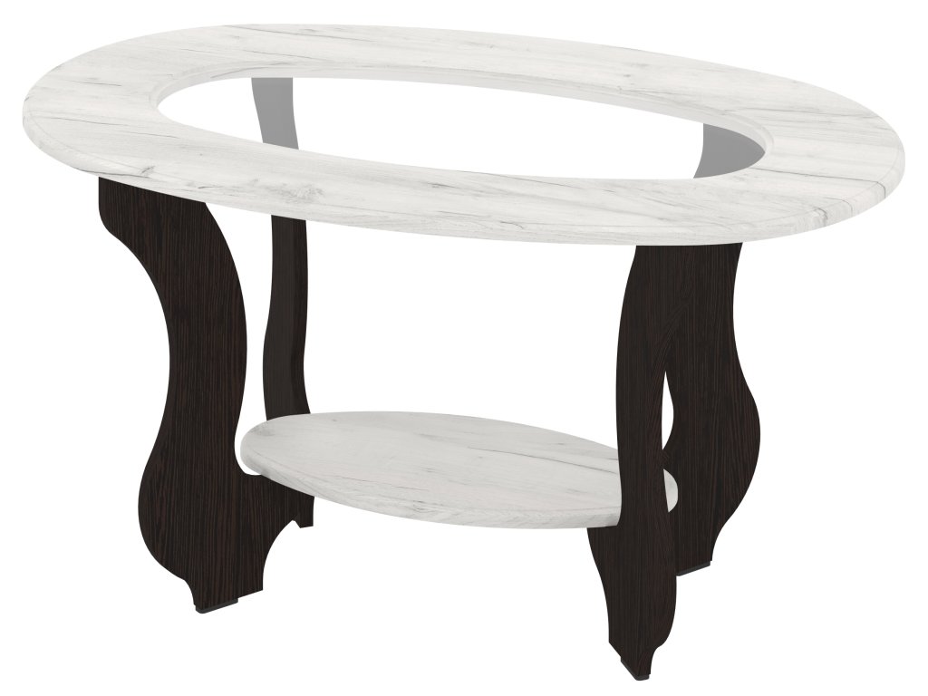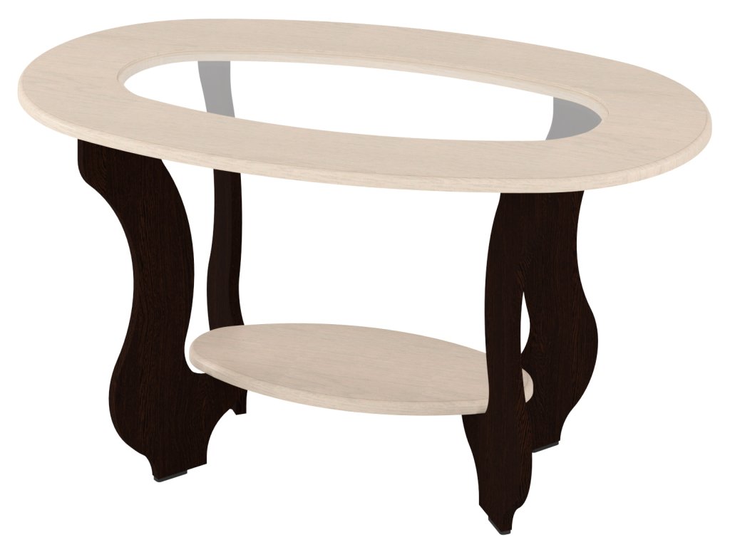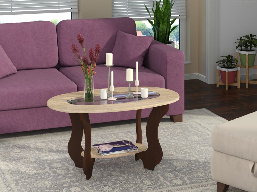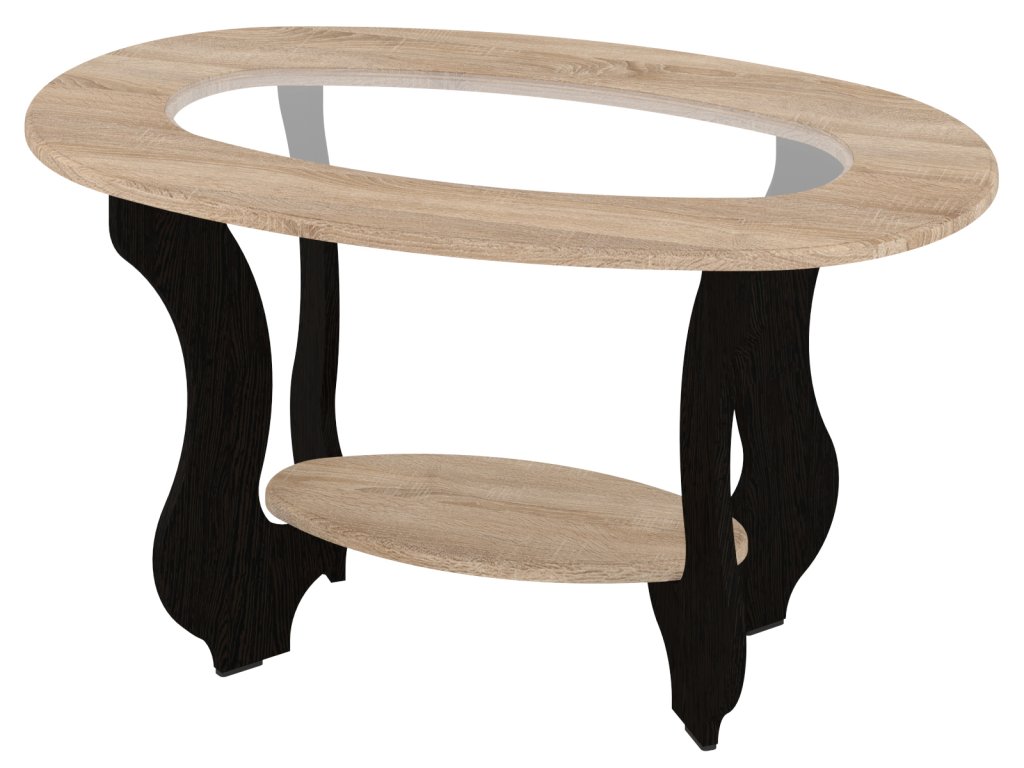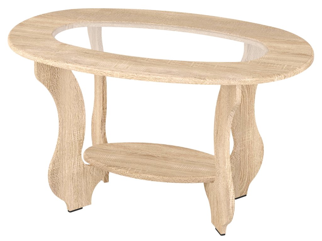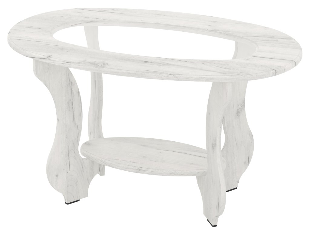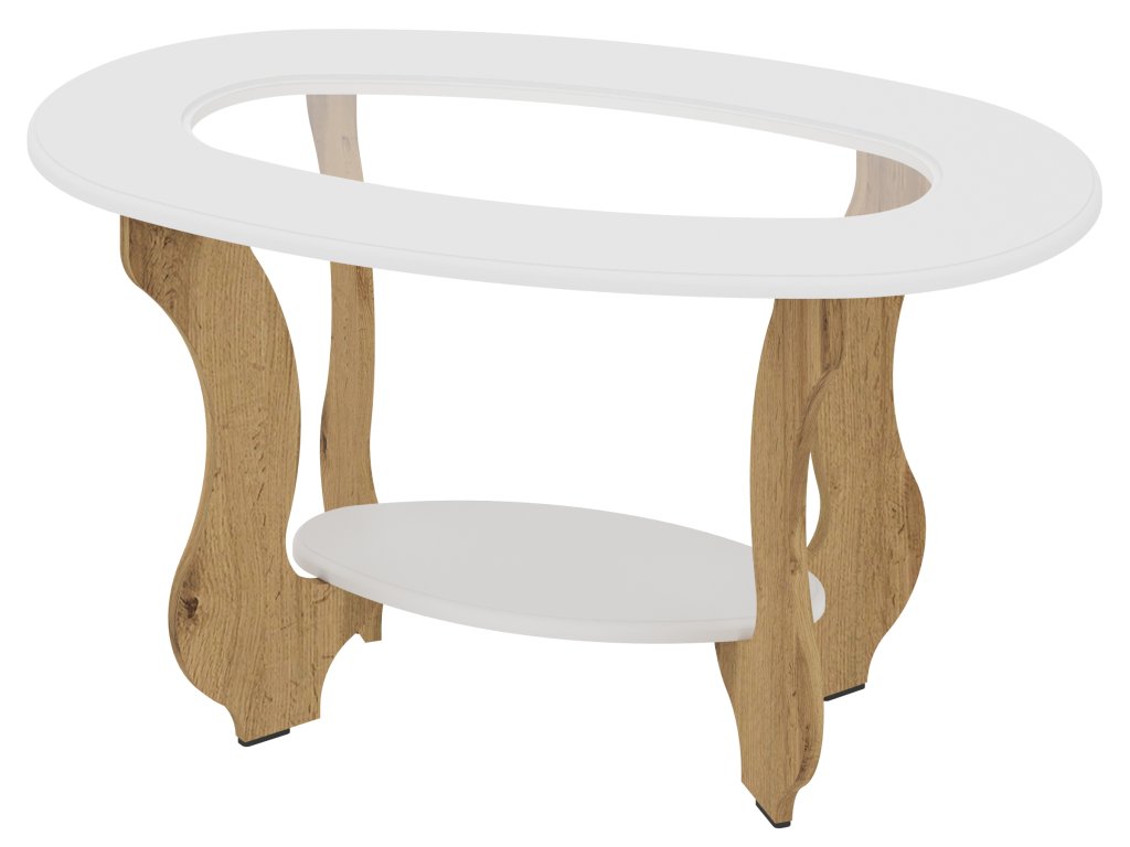 Konferenční stolek ZASMIN oválný s MDF deskou, policí a skleněným prvkem – moderní design pro každý interiér