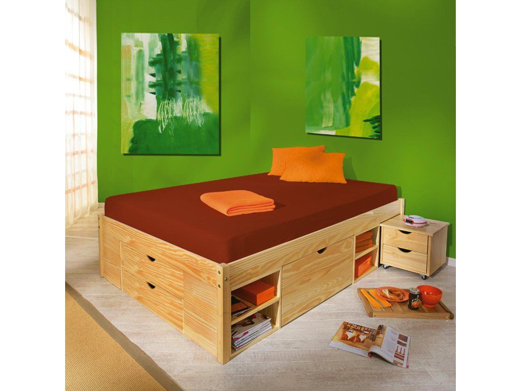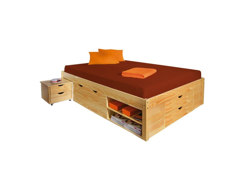 materiál masiv borovice, lakované provedení praktické úložné prostory pod postelí, výška sedu 44,5 cm 2 výsuvné noční stolky a rošt (dřevěný laťkový) jsou v ceně, matrace není v ceně doporučený rozměr matrace 160 × 200 cm nebo 2 kusy 80 × 200 cm
