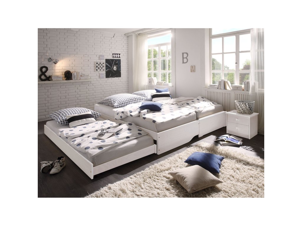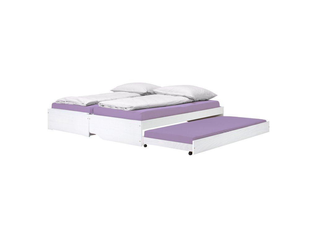 materiál masiv borovice, barevné provedení bílý lak rychle a snadno rozložitelná na dvě nebo tři lůžka dva laťkové rošty jsou součástí dodávky matrace nejsou v ceně, doporučený rozměr matrací 90 × 200 cm do rozložené pohovky Fenix je možno použít libovolně vysoké matrace, v případě složení postele doporučujeme použít do přídavných lůžek matrace do výšky 11 cm