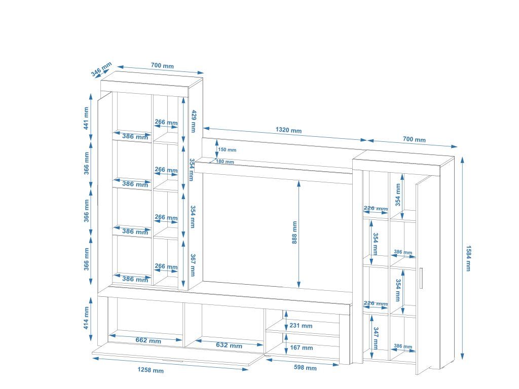 - Prostor pro vše, co potřebujete: Věšák na televizi, úložné prostory a místo pro dekorace – vše, co je potřeba k dokonalé organizaci obývacího pokoje.