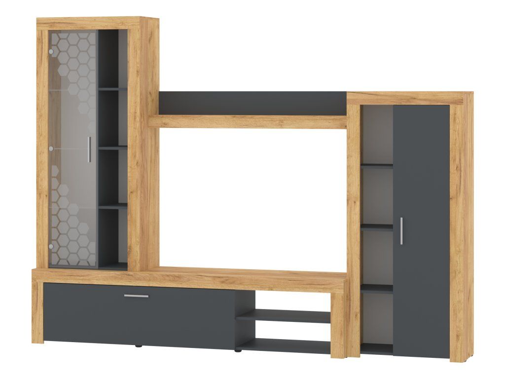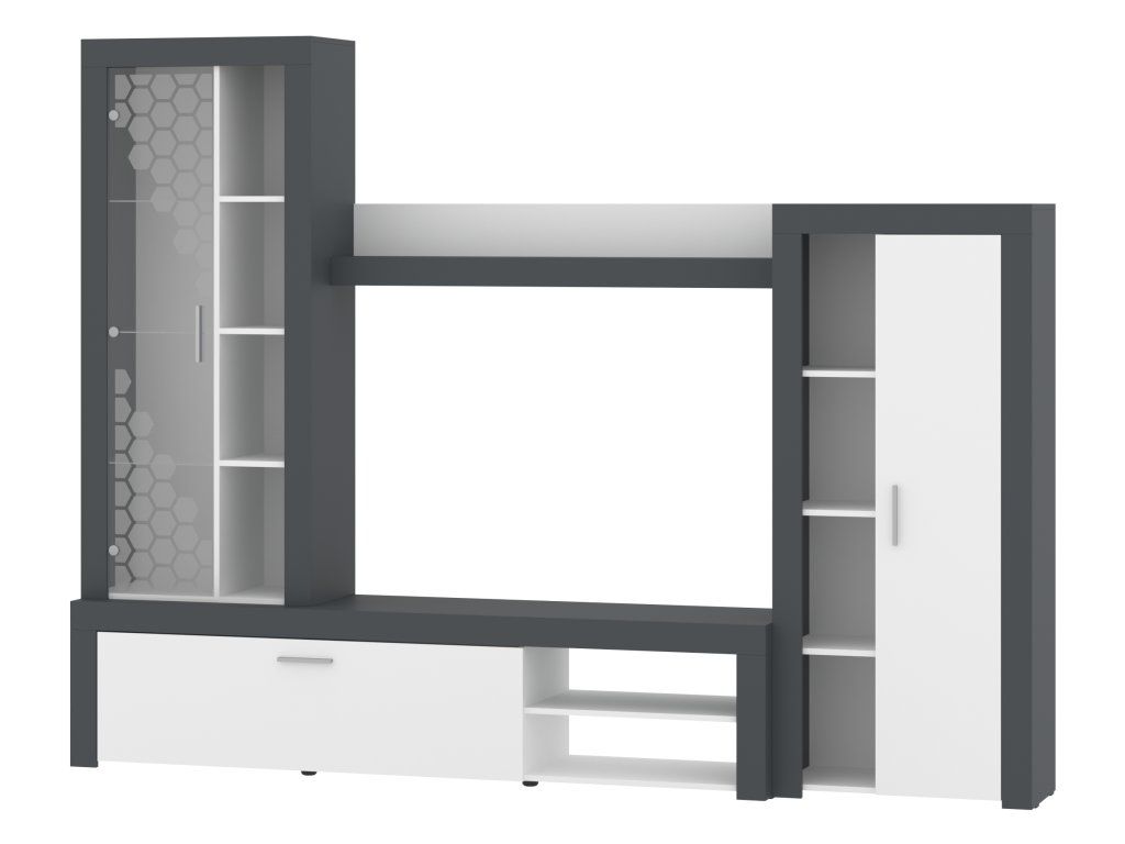 Přineste do svého obývacího pokoje sofistikovaný vzhled a maximální komfort s obývací stěnou Diamant. Moderní a stylový nábytek, který dokonale spojuje design s praktičností. Ať už máte rádi minimalistické nebo spíše bohatě dekorované interiéry, obývací stěna Diamant je ideální volbou pro každého, kdo si potrpí na kvalitu a moderní vzhled.