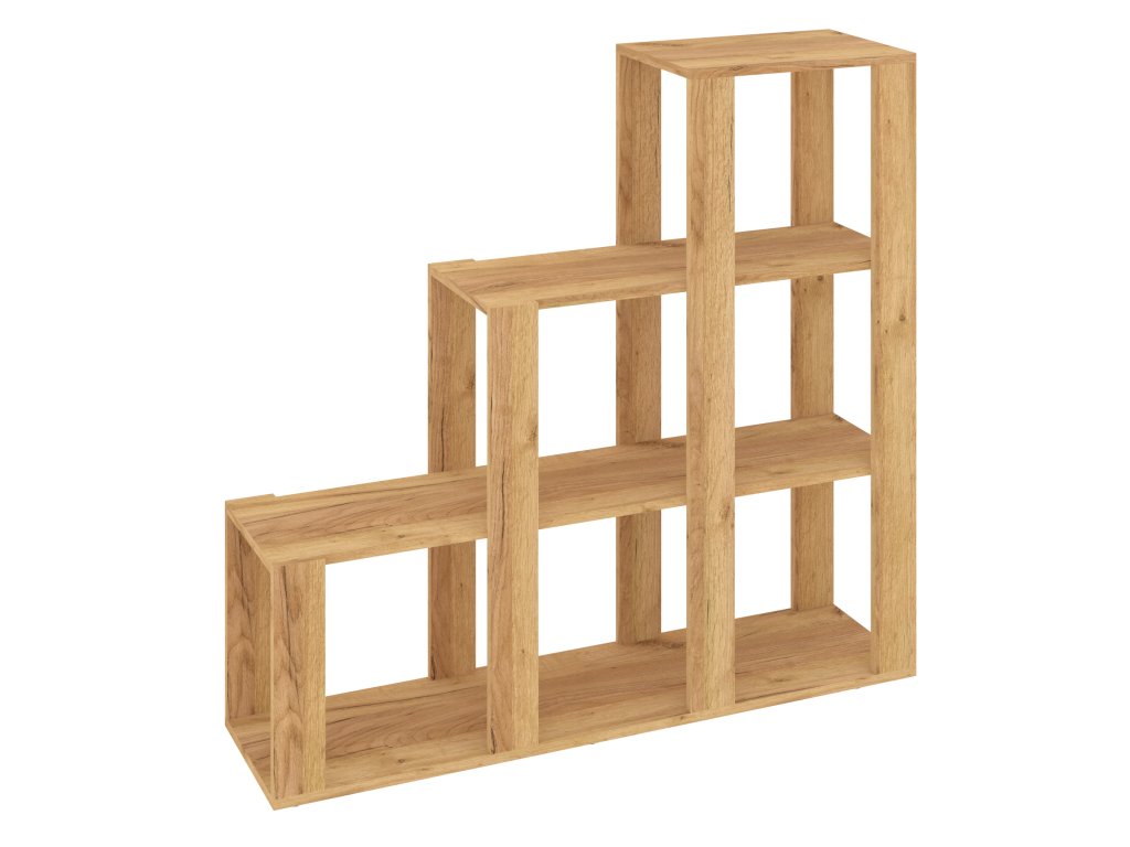 Policový regál ve tvaru schodů je skvělým řešením pro každou moderní domácnost. S rozměry 106,5 cm na výšku, 111,8 cm na šířku a hloubkou 29 cm poskytuje dostatek úložného prostoru pro knihy, dekorace nebo drobnosti, které si zaslouží být na očích. Jeho netradiční tvar schodů přidává místnosti dynamiku a šmrnc, a to jak v obývacím pokoji, pracovně, tak i v chodbě.