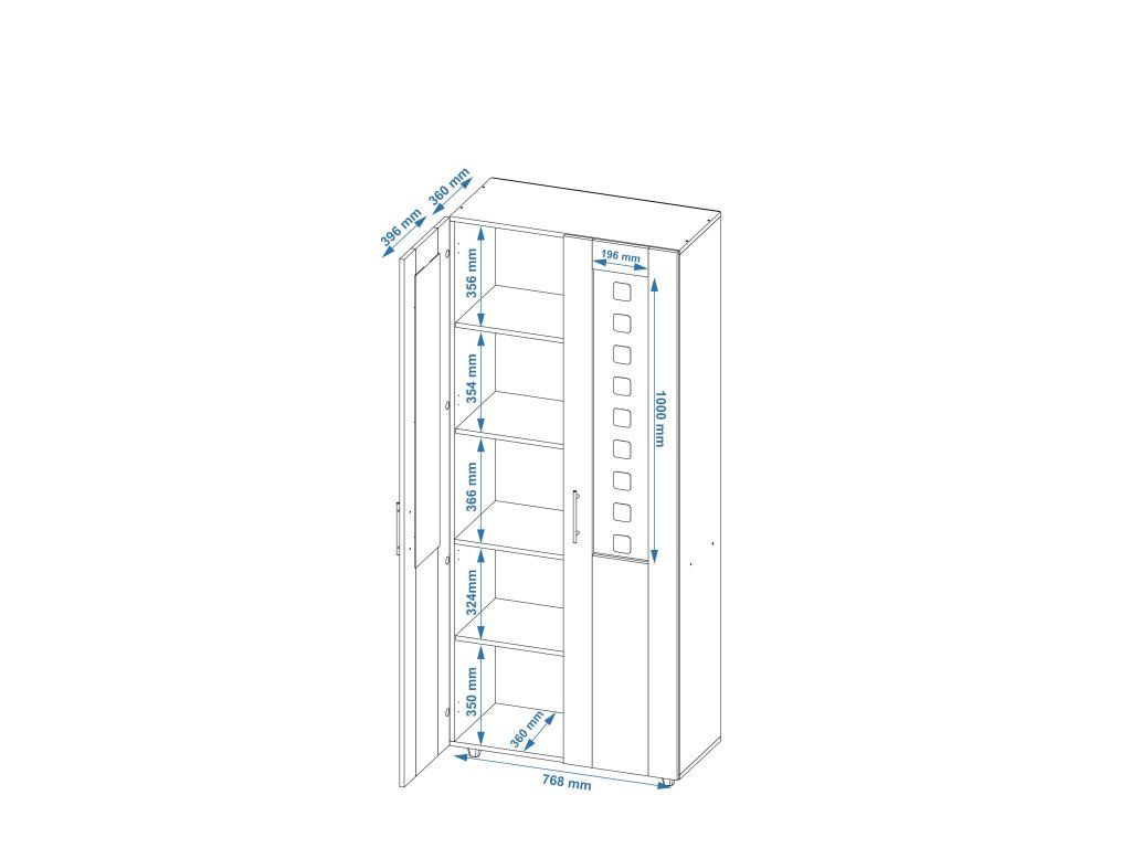 Regál je vyroben z kvalitního materiálu, což zaručuje jeho dlouhou životnost a stabilitu. Díky elegantnímu vzhledu zapadne do každého prostředí, ať už jde o kancelář, obývací pokoj nebo ložnici. Skleněné části přidávají do interiéru svěžest a lehkost, zatímco dvířka chrání vaše věci před prachem a nečistotami.