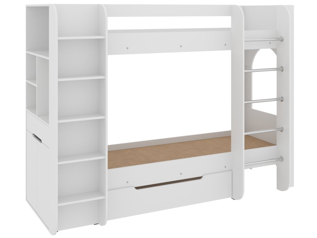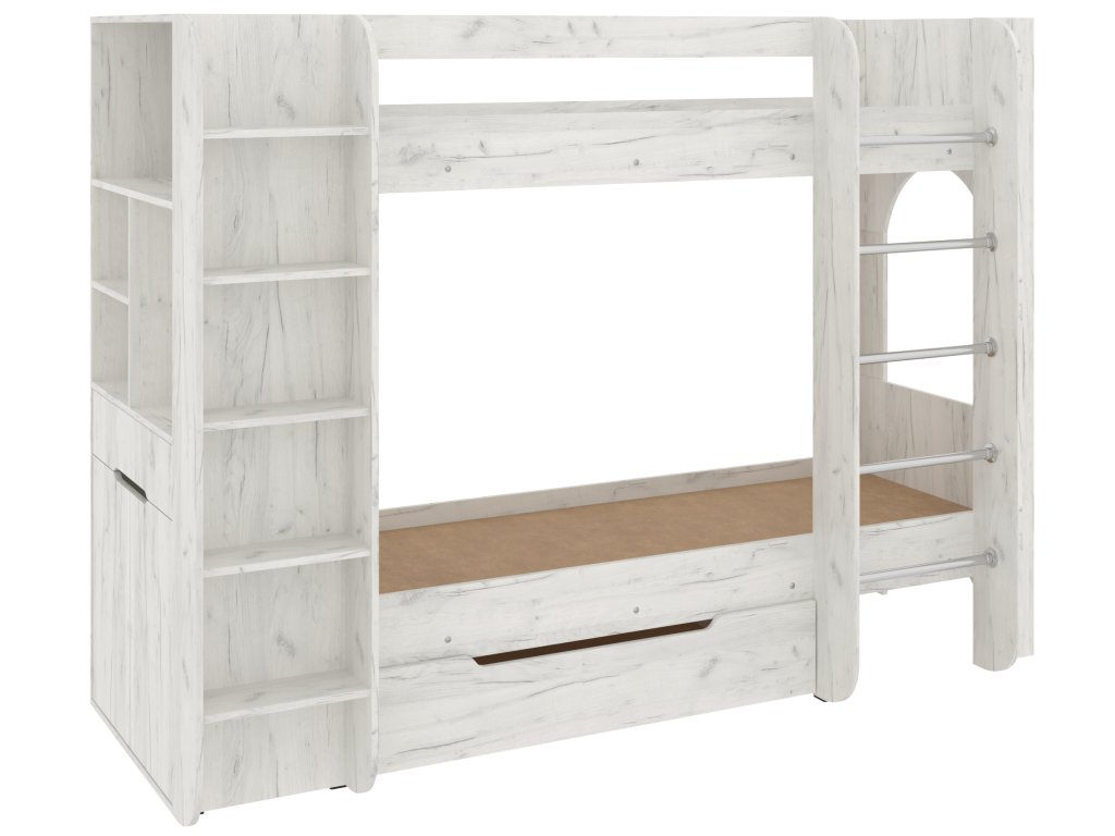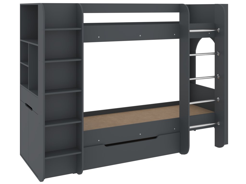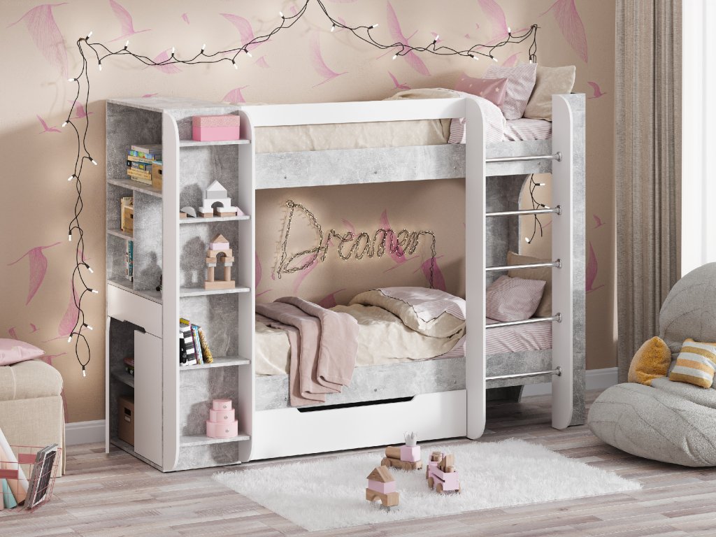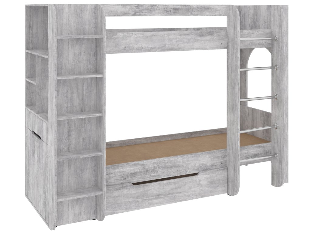 Dětská patrová postel DUET-4 je ideálním řešením pro úsporu místa v dětském pokoji, aniž byste museli slevovat z pohodlí a stylu. Díky integrovaným policovým regálům, skříňce a praktické zásuvce nabízí nejen pohodlné spaní, ale i dostatek úložného prostoru pro všechny dětské věci. S tímto designem si váš malý průzkumník bude moci uspořádat svůj prostor podle svého přání.
