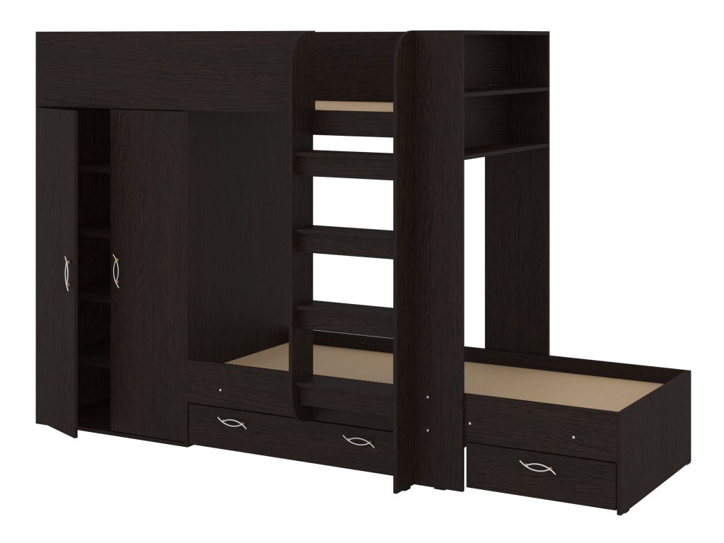 Dětská patrová postel NEMO 190x80 s šatní skříní a policovým regálem