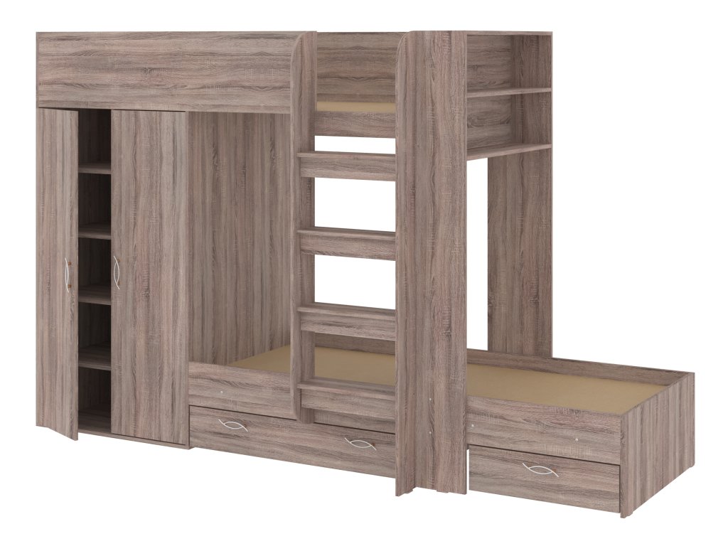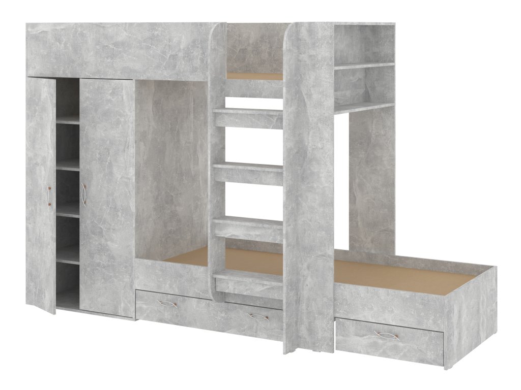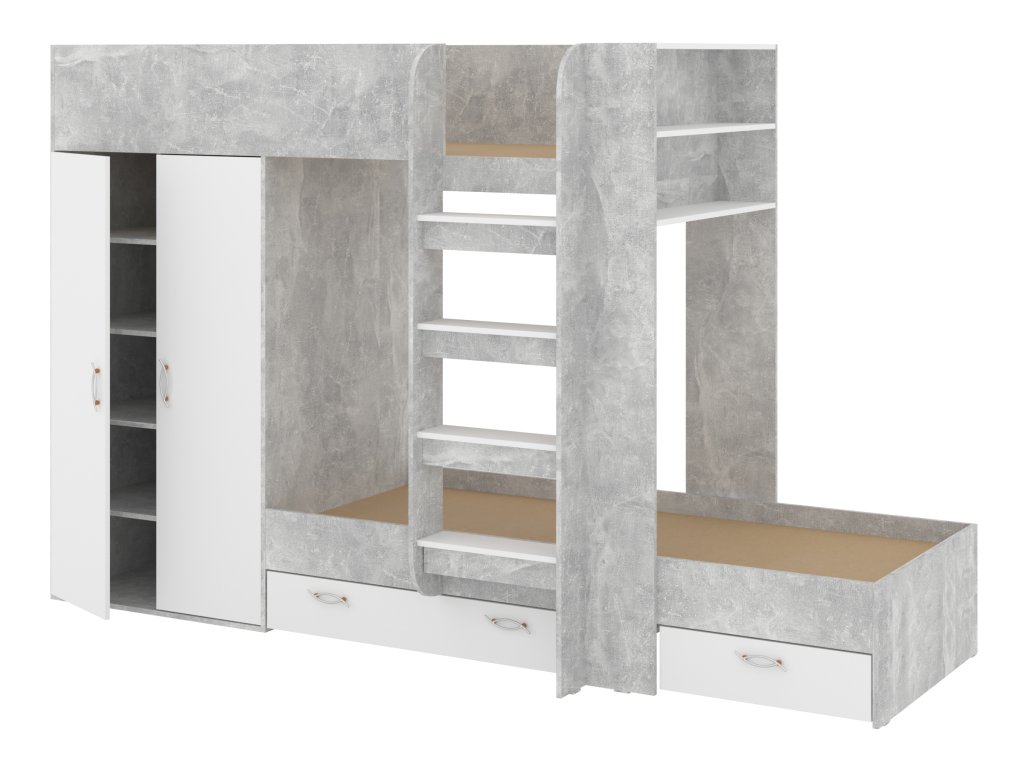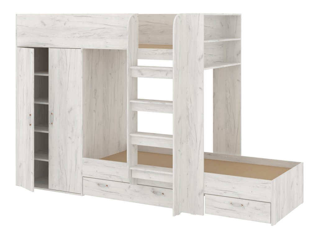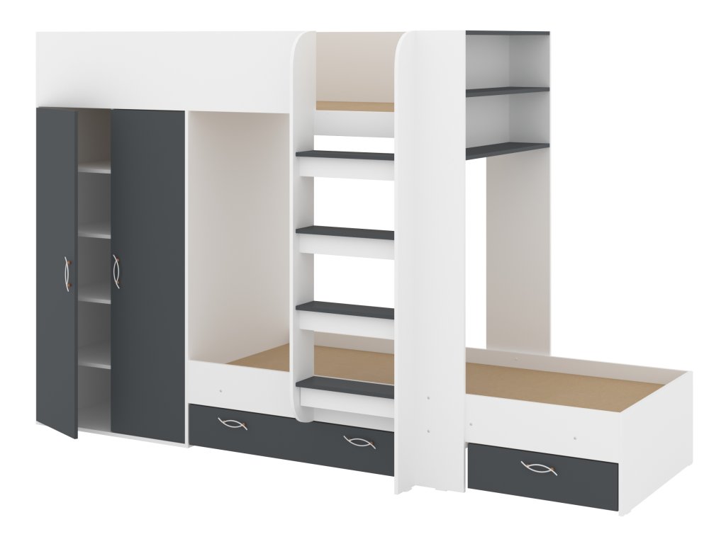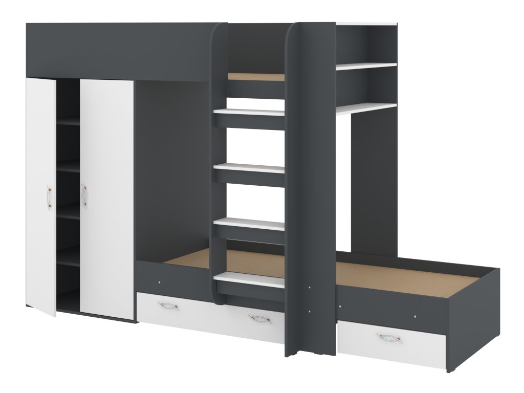 Dětská patrová postel NEMO 200x90 s šatní skříní a policovým regálem