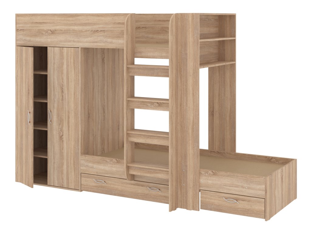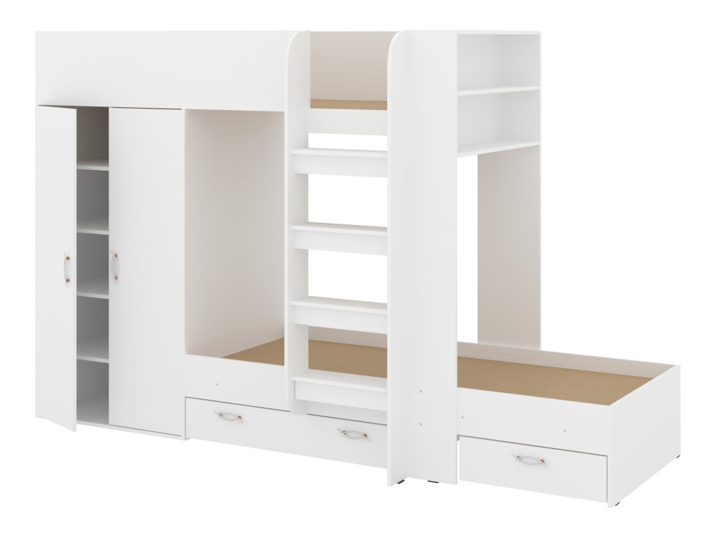 Hledáte praktické a stylové řešení pro dětský pokoj? Dětská patrová postel NEMO je ideálním nábytkem pro každý pokoj, kde potřebujete maximálně využít prostor. Tato postel nabízí více než jen místo pro spánek – obsahuje i šatní skříň a policový regál, čímž šetří místo a zajišťuje perfektní organizaci pokoje.