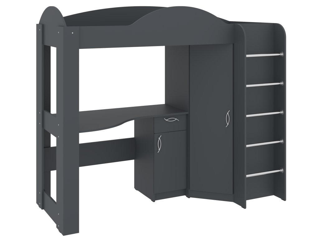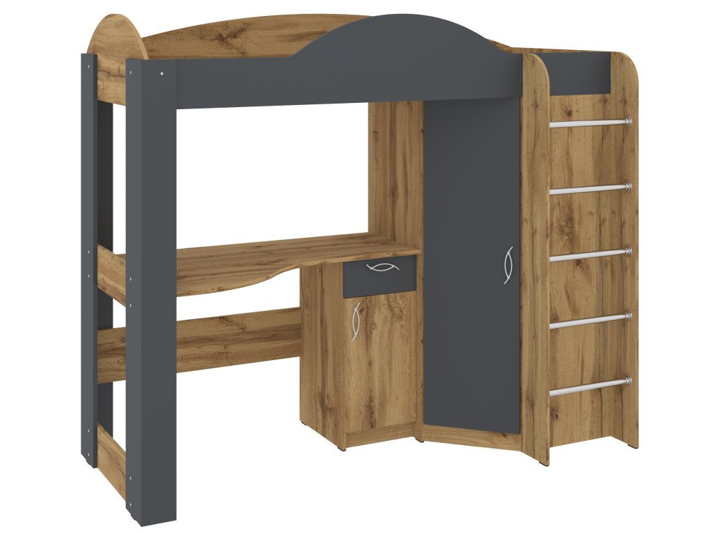 Patrová postel ORBITA 190x70 cm s rohovou šatní skříní a psacím stolem – Praktické řešení pro dětský pokoj!
