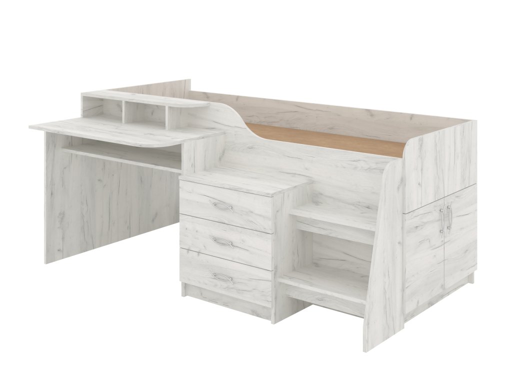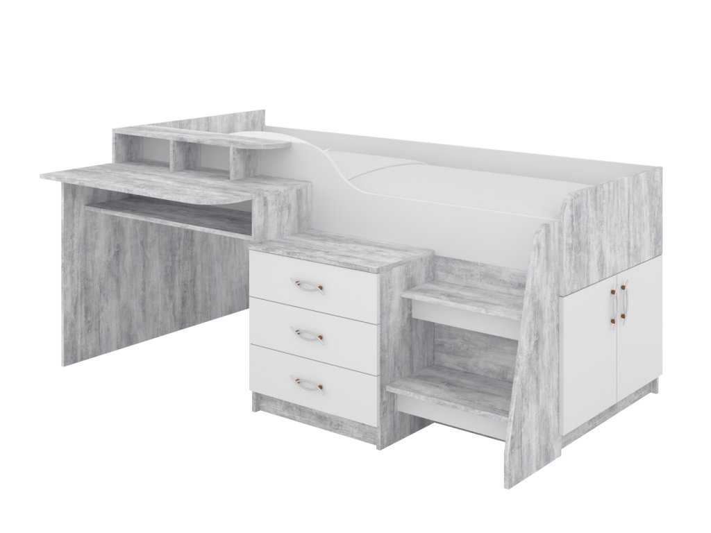 Dětská zvýšená postel SPEYS 200x90 cm je ideálním řešením pro efektivní využití prostoru v dětském pokoji. Tato praktická patrová postel s výsuvným psacím stolem, zásuvkovou komodou a skříňkou v jednom je navržena tak, aby poskytla dostatek úložného prostoru a zároveň nabízela pohodlné místo pro spánek.