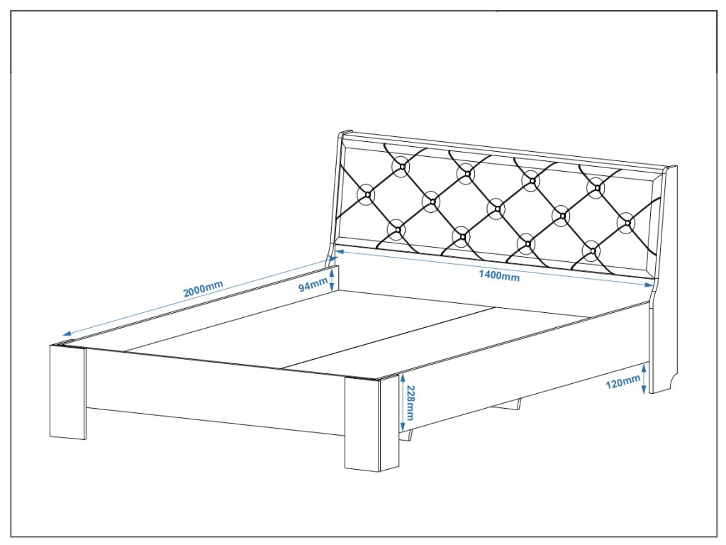 Postel MONIKA 140x200 cm je ideální volbou pro ty, kteří hledají kvalitní, komfortní a stylové dvojlůžko do své ložnice. S rozměrem matrace 140x200 cm nabízí dostatek prostoru pro pohodlný spánek. Celková délka postele je 216 cm, šířka 146,4 cm a výška čela dosahuje 85 cm, což dodává posteli elegantní vzhled. Součástí postele je pevná deska pro uložení matrace, což zajišťuje stabilitu a dlouhou životnost konstrukce.