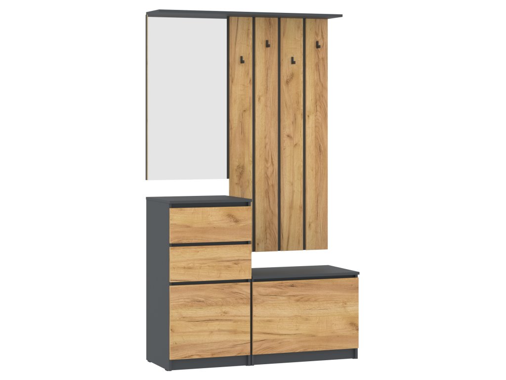 Díky zrcadlu si můžete rychle upravit vzhled před odchodem, zatímco věšák poskytuje dostatek prostoru pro kabáty, bundy nebo klíče. Dvě praktické zásuvky vám umožní uschovat drobnosti, které chcete mít po ruce, jako jsou rukavice nebo peněženka. Policový botník je ideálním místem pro uložení bot, což zajistí, že vaše předsíň zůstane vždy v pořádku.