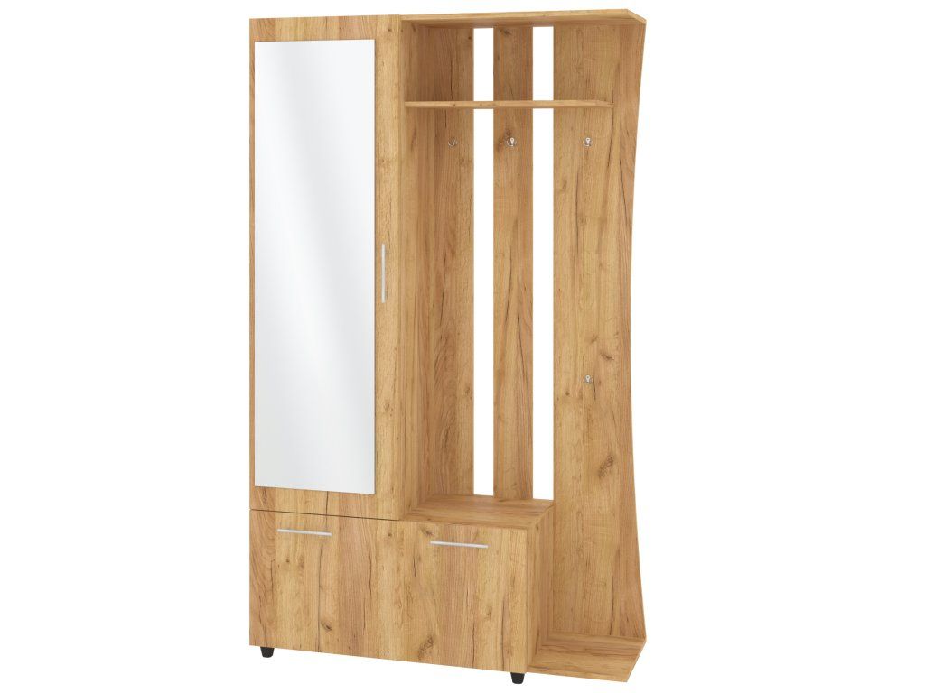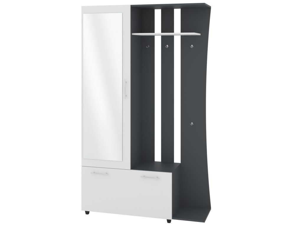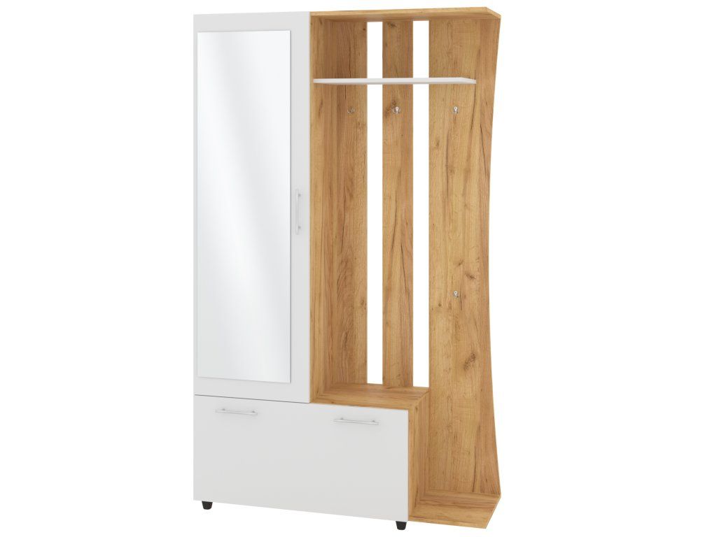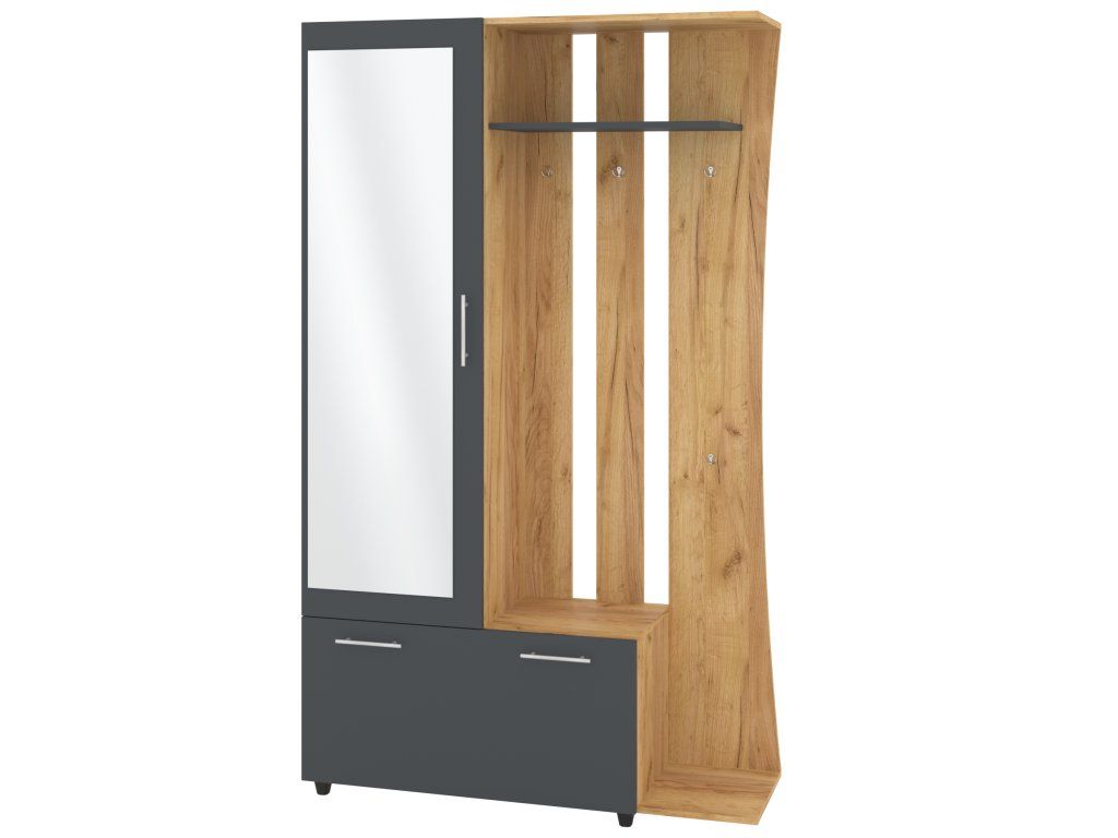 - Praktické uspořádání: Kombinace věšáku, botníku a šatní skříně pro maximální efektivitu.
