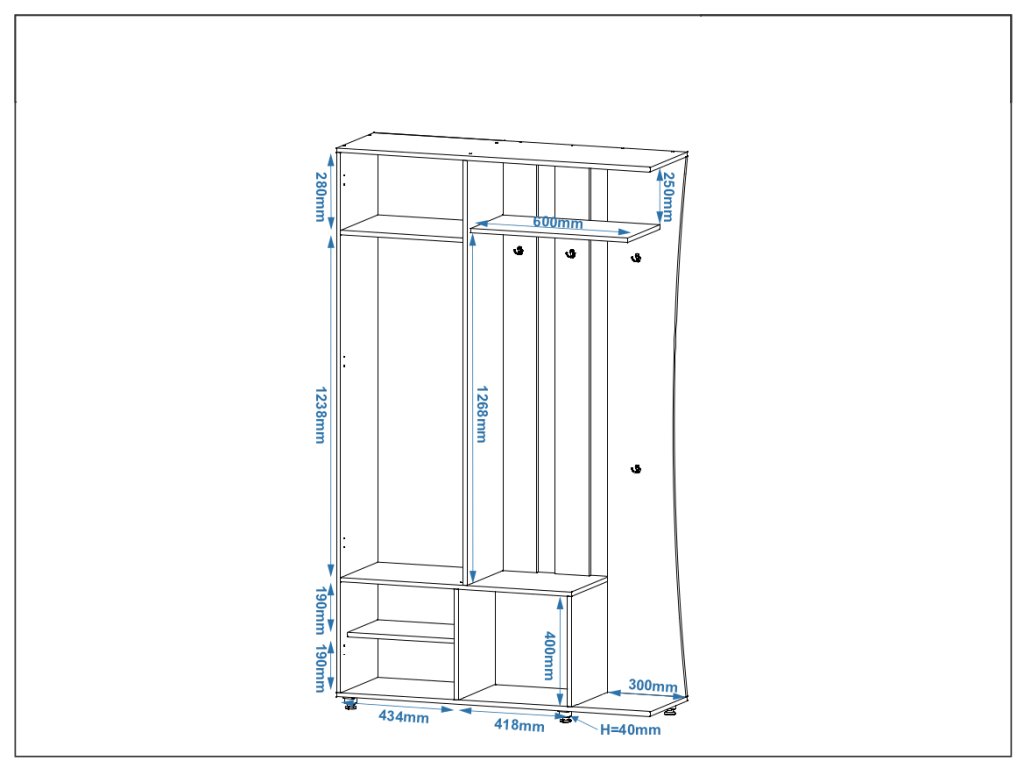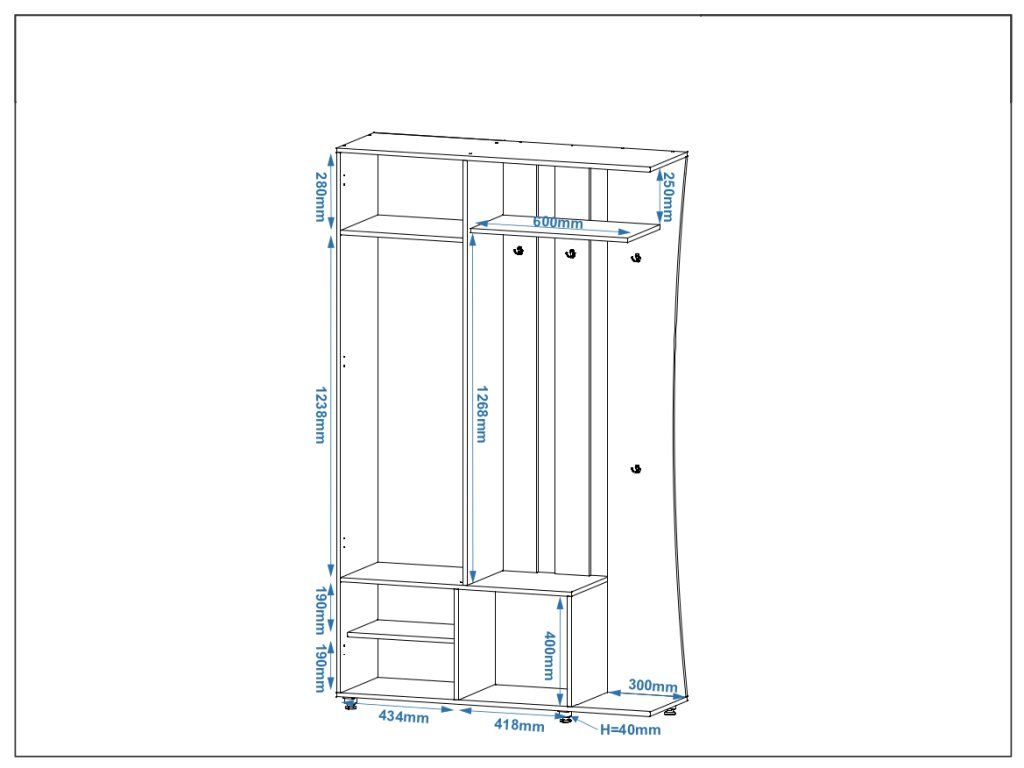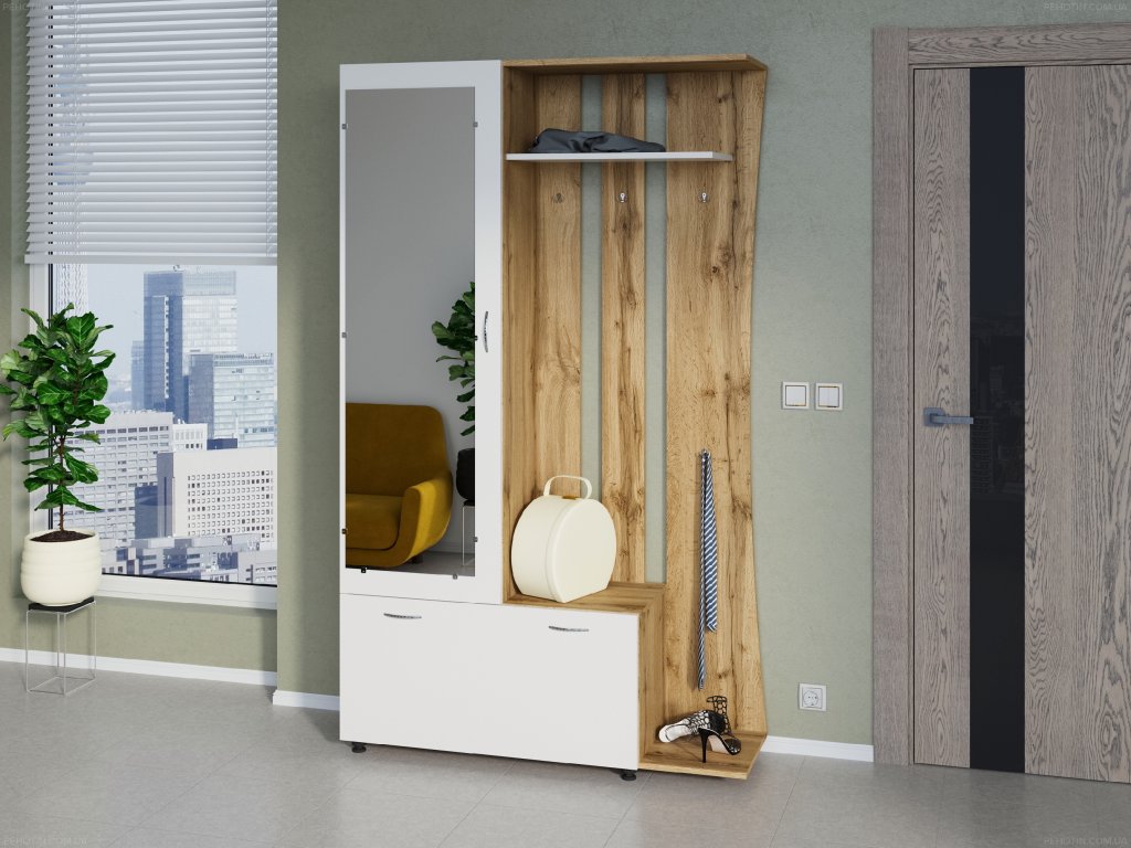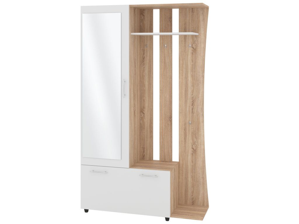 - Praktické uspořádání: Kombinace věšáku, botníku a šatní skříně pro maximální efektivitu.