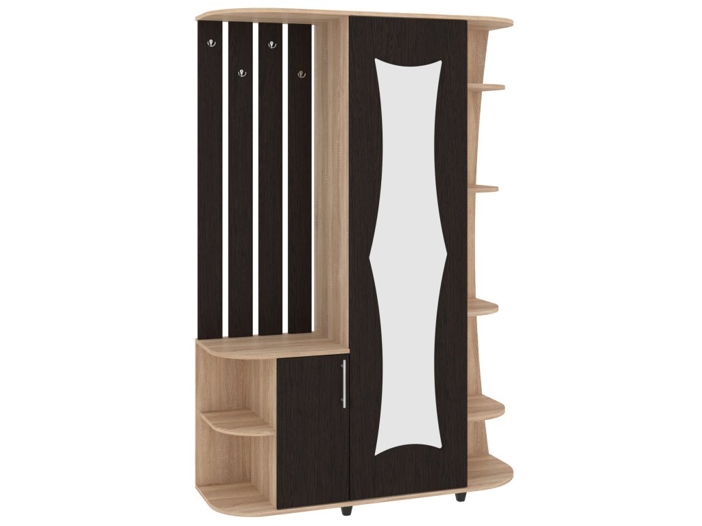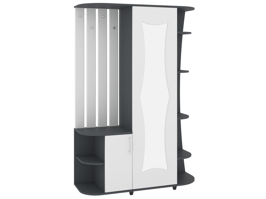 - Funkčnost na prvním místě: Spojení zrcadla, věšáků, skříně, výsuvu, zásuvek a botníku v jednom nábytku pro kompletní řešení předsíně.