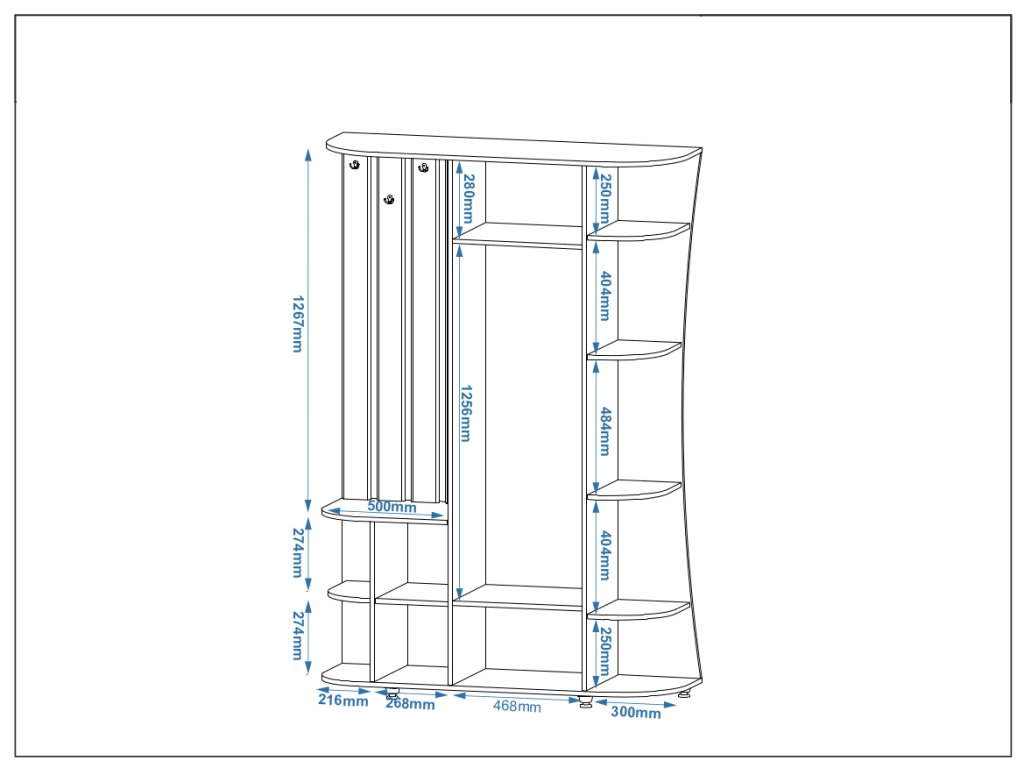 - Praktické uspořádání: Úložné prostory pro obuv, oblečení a drobnosti pro maximální organizaci.