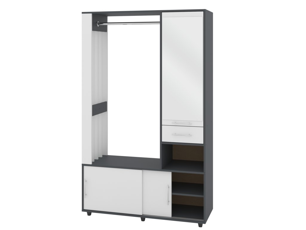 Vylepšete svou předsíň s předsíňovou stěnou HERMES, která spojuje moderní design s praktickými funkcemi. Tento elegantní nábytek nabízí širokou škálu úložných prostorů, které vám pomohou udržet pořádek a zároveň vytvoří stylový dojem ve vašem interiéru. Předsíňová stěna obsahuje šatní tyč, zrcadlo, botník s posuvnými dvířky, praktickou zásuvku a navíc i skrytý policový regál za zrcadlovými dvířky, který nabídne ještě více úložného prostoru.
