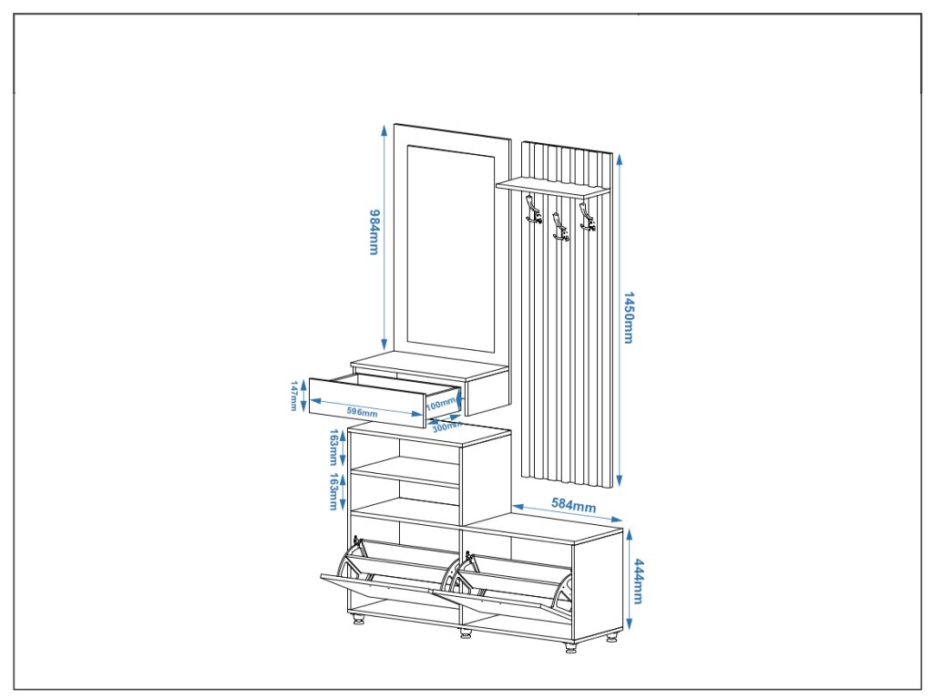 - Optimalizovaný úložný prostor: Dvě řady botníků, věšák, polička a zásuvka vám umožní udržet vše potřebné na jednom místě.