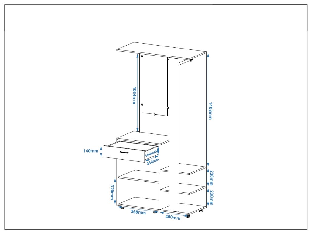 - Prostor pro všechny vaše potřeby: Zrcadlo vám umožní rychlou kontrolu vzhledu, věšák zase poslouží pro odložení kabátů a bund, zatímco zásuvka a botník s dvířky poskytují dostatek úložného prostoru pro boty a další drobnosti.