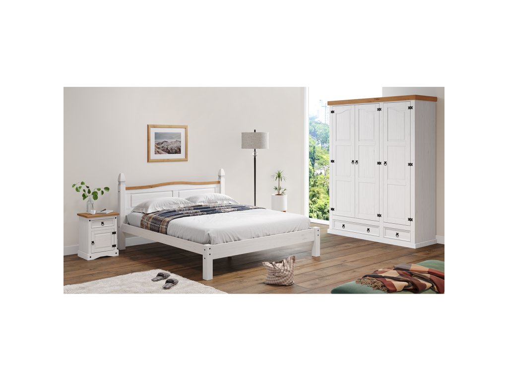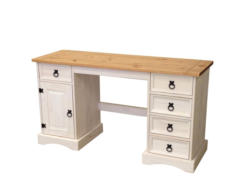 materiál masiv borovice voskovaná v bílém odstínu horní deska masiv borovice voskovaná v medovém odstínu 5 malých zásuvek, 1 dvířka, kovové ozdobné úchytky součást sestavy Corona bílá
