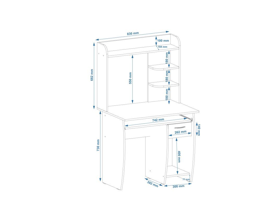 - Praktický nástavec: Poskytuje úložné prostory pro vaše dokumenty, knihy nebo další pracovní potřeby, čímž udržuje pracovní prostor čistý a organizovaný.