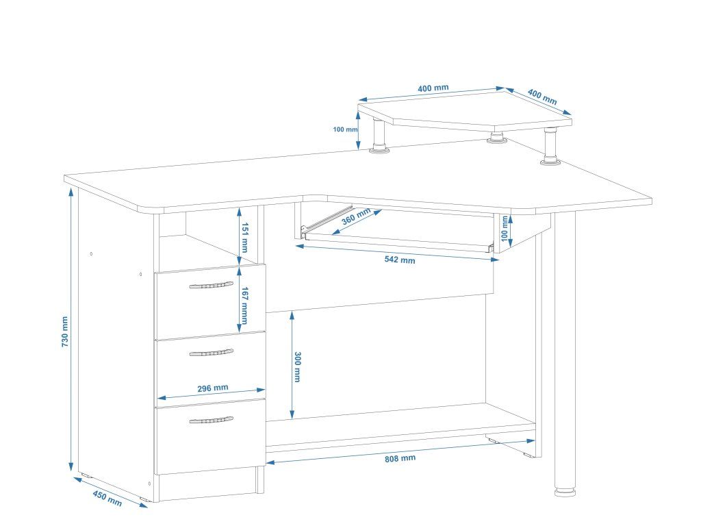 Rohový psací stůl ORFEJ se zásuvkami – praktický a stylový stůl pro každou domácnost nebo kancelář. Tento rohový stůl nabízí dostatek prostoru pro všechny vaše pracovní potřeby a zároveň pomůže maximálně využít prostor díky jeho rohovému designu. S elegantním vzhledem a kombinací moderního designu je ideálním řešením pro organizaci pracovního prostoru.