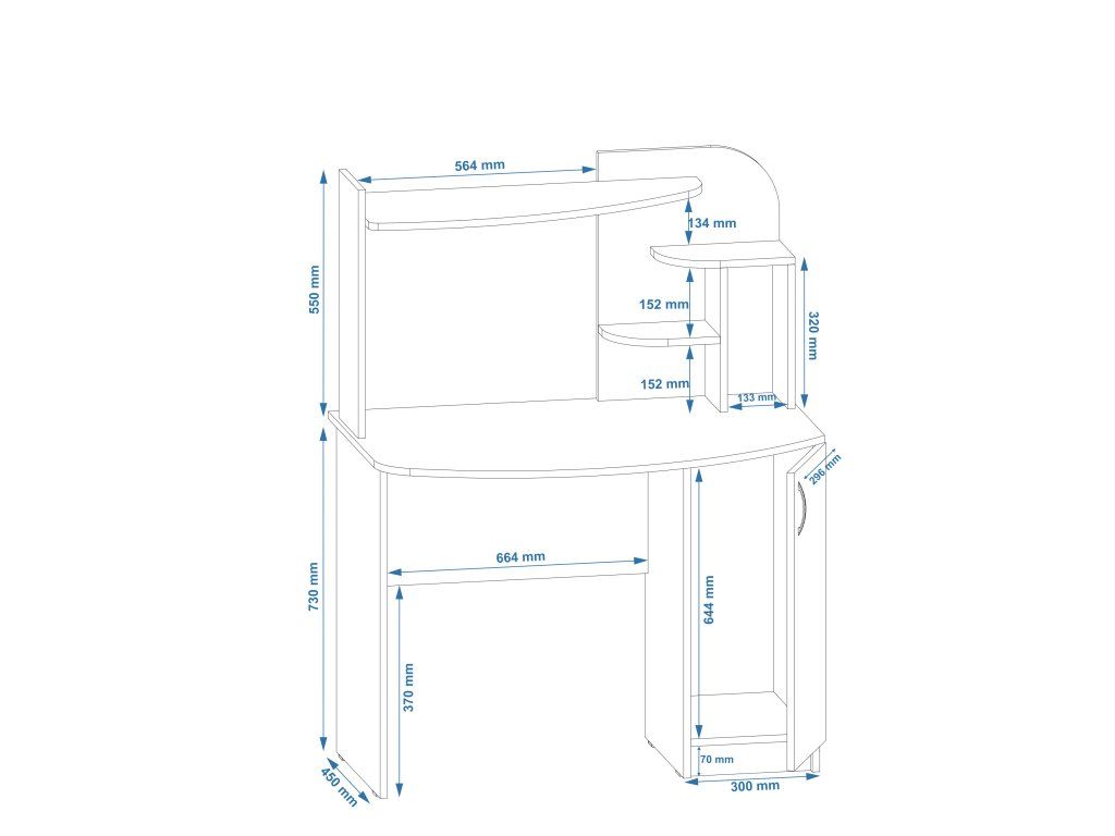 - Praktická skříňka: Úložný prostor pro dokumenty a kancelářské potřeby, který pomáhá udržet pracovní plochu uklizenou.