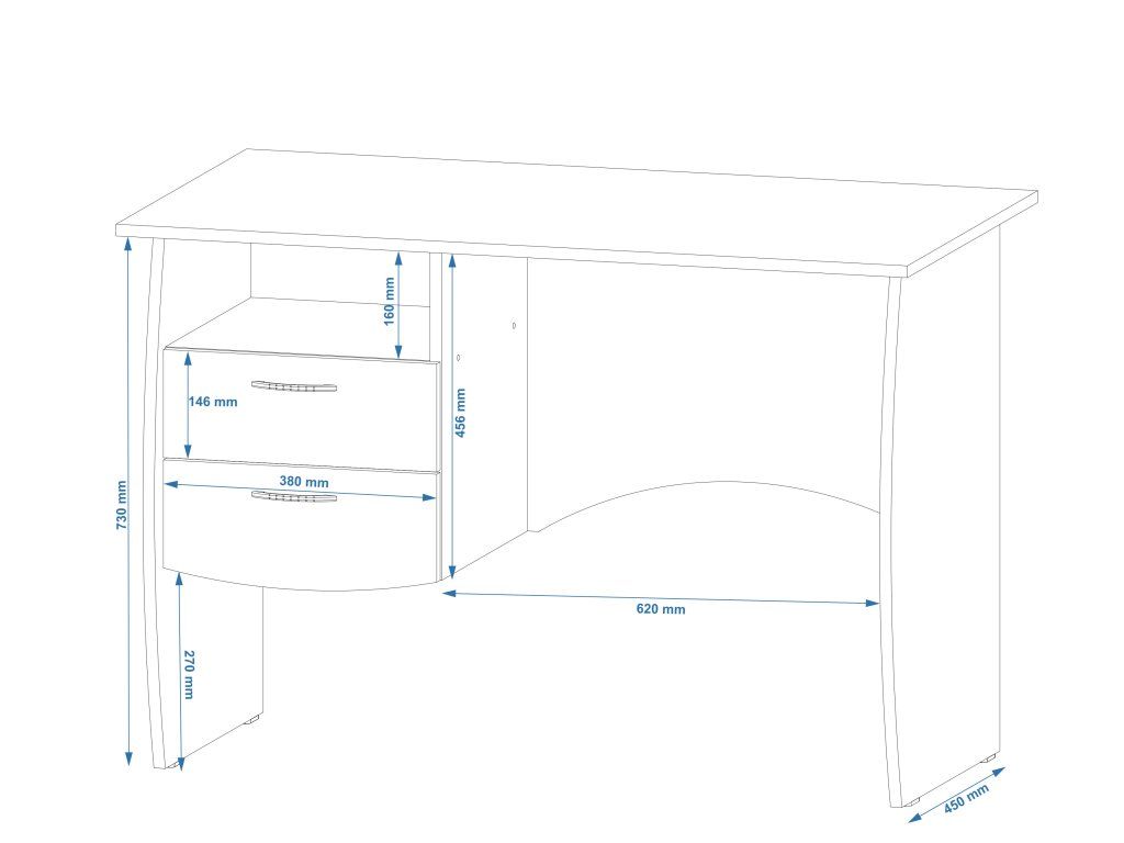 Psací stůl Fortuna je ideálním řešením pro každou pracovnu, domácí kancelář nebo studentský pokoj. S jeho elegantním designem a praktickými zásuvkami, které vám umožní mít vše na dosah ruky, bude vaše pracovní prostředí mnohem organizovanější a efektivnější. Tento stůl je vyroben z kvalitních materiálů, které zaručují dlouhou životnost a stabilitu. Díky dostatečnému úložnému prostoru do něj pohodlně uložíte všechny potřebné dokumenty, psací potřeby a další drobnosti.
