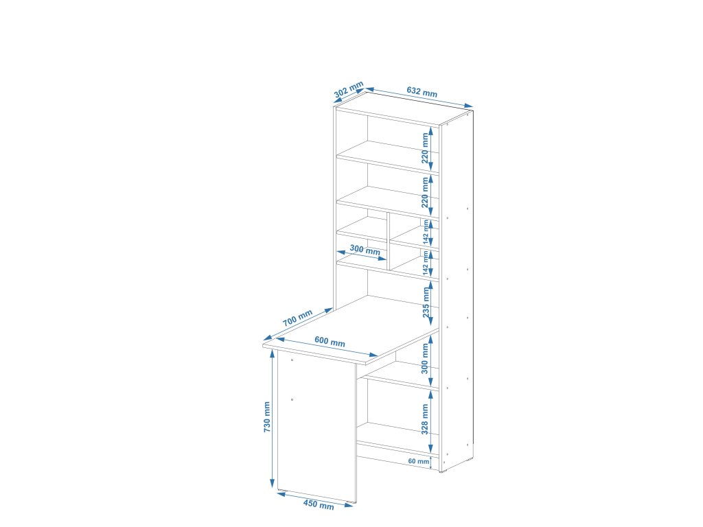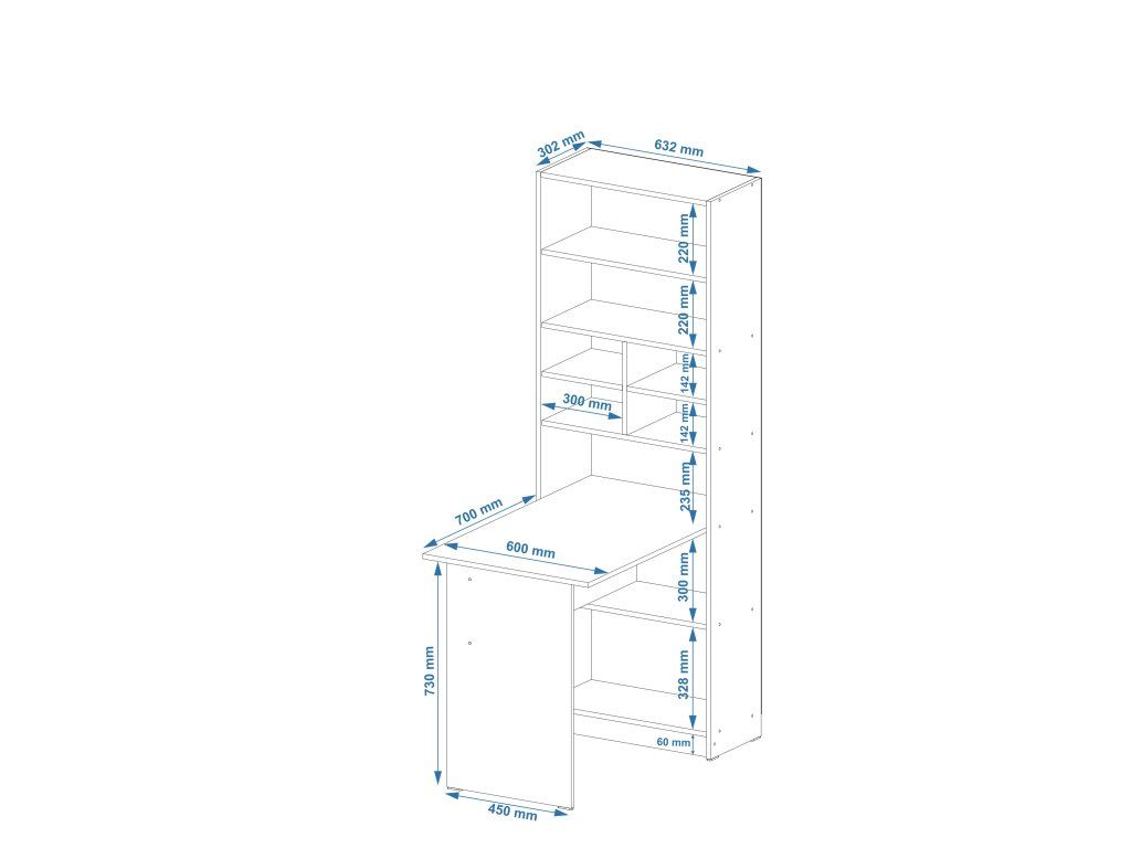 - Funkčnost a úspora místa: Kombinace pracovního stolu a regálu umožňuje maximálně využít prostor a udržet vše potřebné na dosah, aniž byste ztratili přehled.
