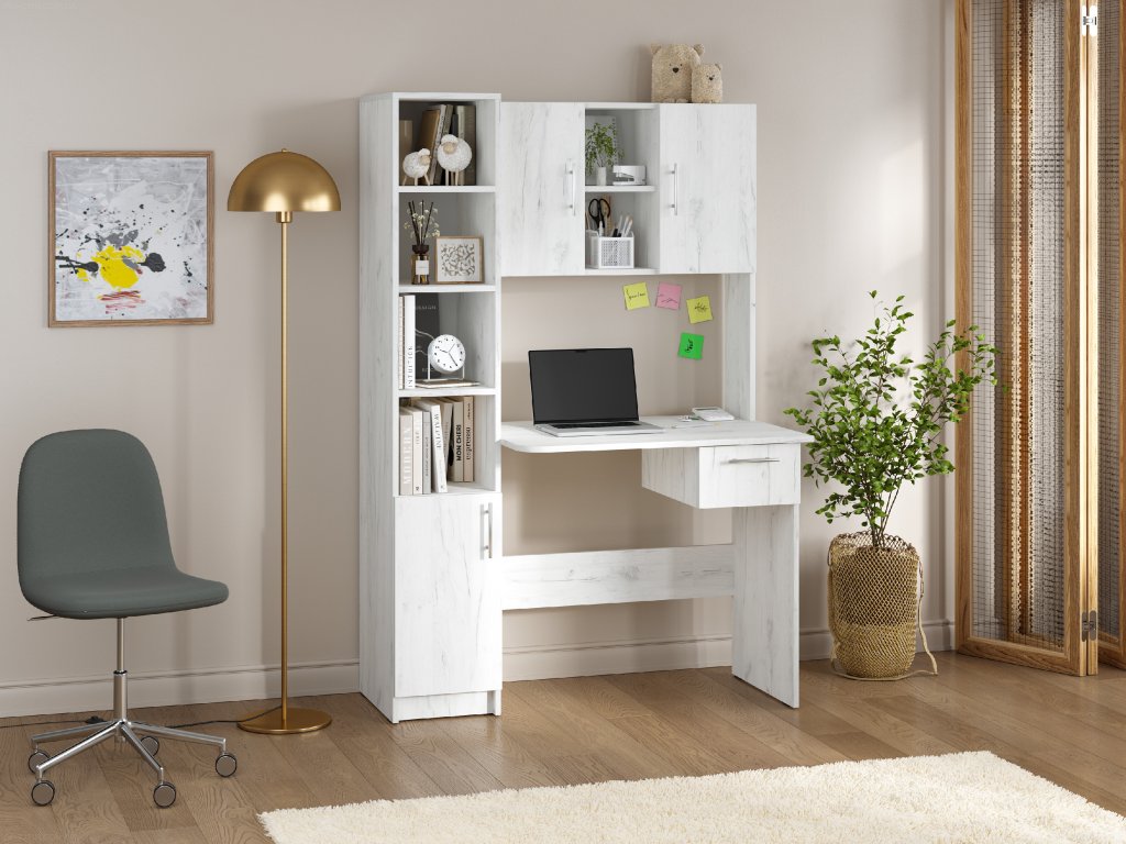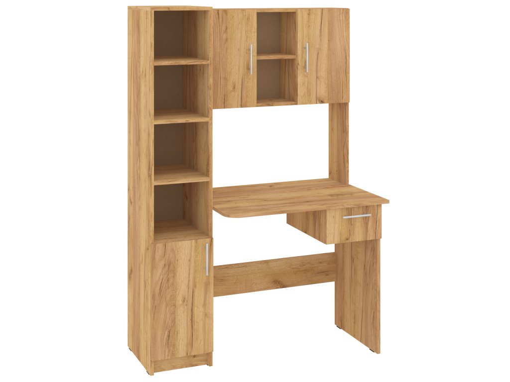 Přineste si domů dokonalý pracovní stůl, který kombinuje funkčnost, eleganci a dostatek úložného prostoru! Psací stůl Piligrim s praktickým nástavcem a bočním policovým regálem je ideálním řešením pro všechny, kdo potřebují efektivní pracovní prostor, aniž by obětovali styl.