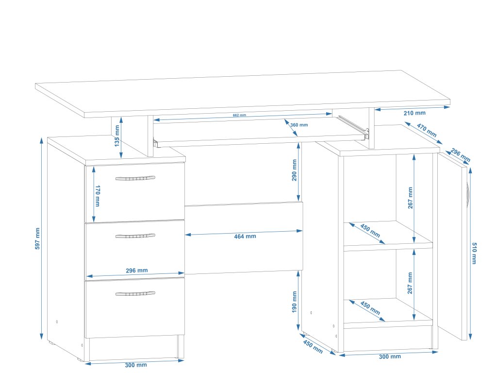 - Praktické uspořádání: Velká pracovní plocha, která poskytuje pohodlný prostor pro práci.