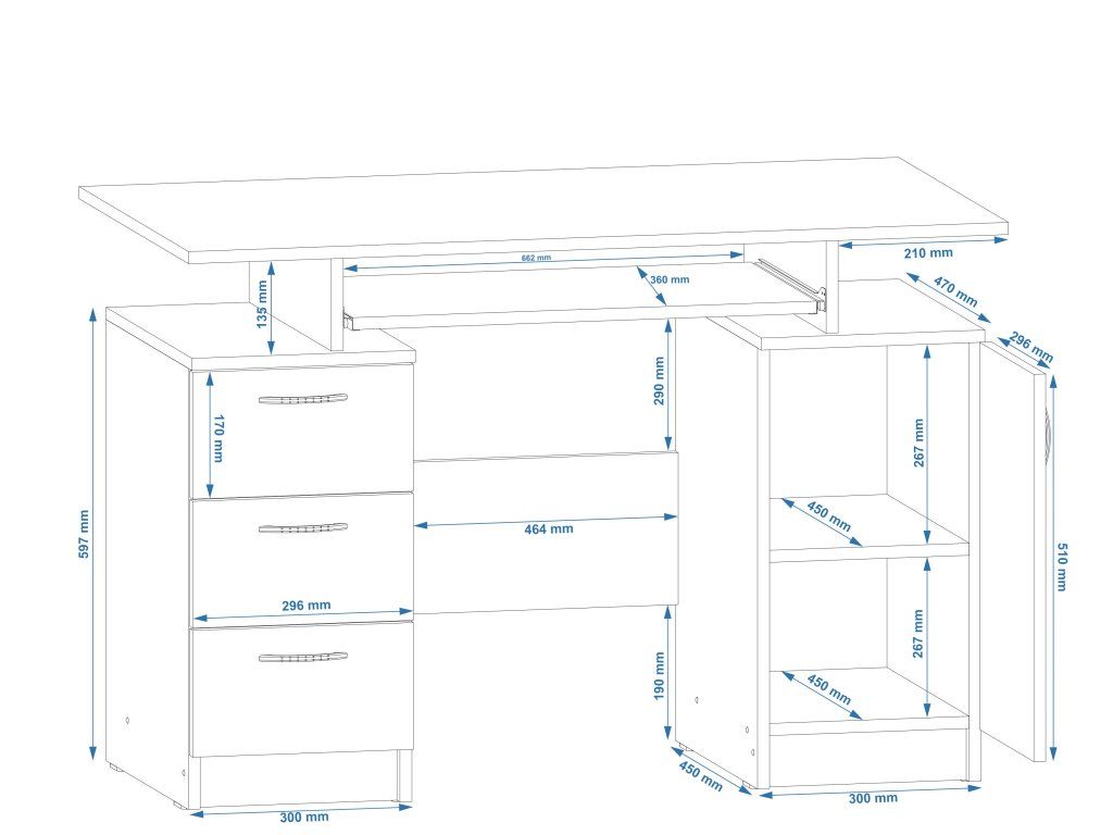 - Dostatek úložného prostoru: Zásuvky a skříňky pro přehledné uspořádání vašich věcí.
