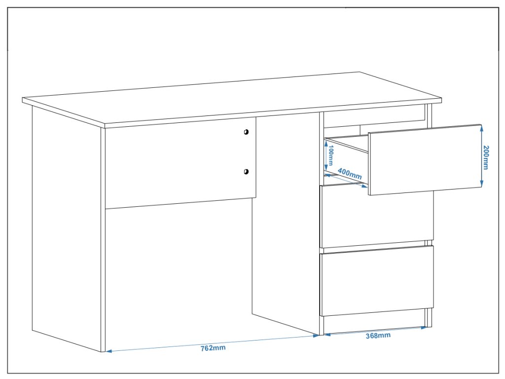 - Praktické zásuvky: Zásuvky umístěné na pravé straně poskytují skvélé místo pro uspořádání dokumentů, psacích potřeb a osobních věcí. Udržte svou pracovní plochu čistou a organizovanou.