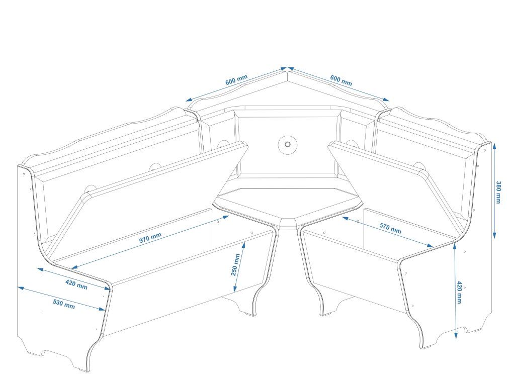 Rohová lavice je navržena tak, aby ji bylo možné umístit na levou i pravou stranu, což zajišťuje maximální flexibilitu při zařizování prostoru. Díky tomu se snadno přizpůsobí každé místnosti a vyhoví vašim potřebám.